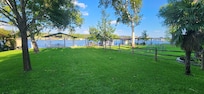 Top of the line amenities throughout this three bedroom three bath home. Huge sectional sofa in the living room with large glass wall for viewing beautiful Lake LBJ. Master sports a King bed with a large sliding glass wall looking out to the Lake and a private bath. Number two bedroom has private bath and a queen bed. Bunk room has two twins and a full size mattress. Living area has a very comfortable futon in addition to the large sectional. This home will sleep 10 comfortably. Very beautiful gradual sloping backyard leads you to over-sized sun deck and dock (covered and non-covered) next to lifted boat hoist that will accommodate most pontoon and V hull boats. Other boats such as Tritoons or larger size boats maybe moored in the swimming area. Please let us know when booking what type of boat you have and we will be glad to let you know if your boat is suitable for the lift. The dock also has two Jetski (PWC) slots on a lifted hoist, Great place to bring the family.