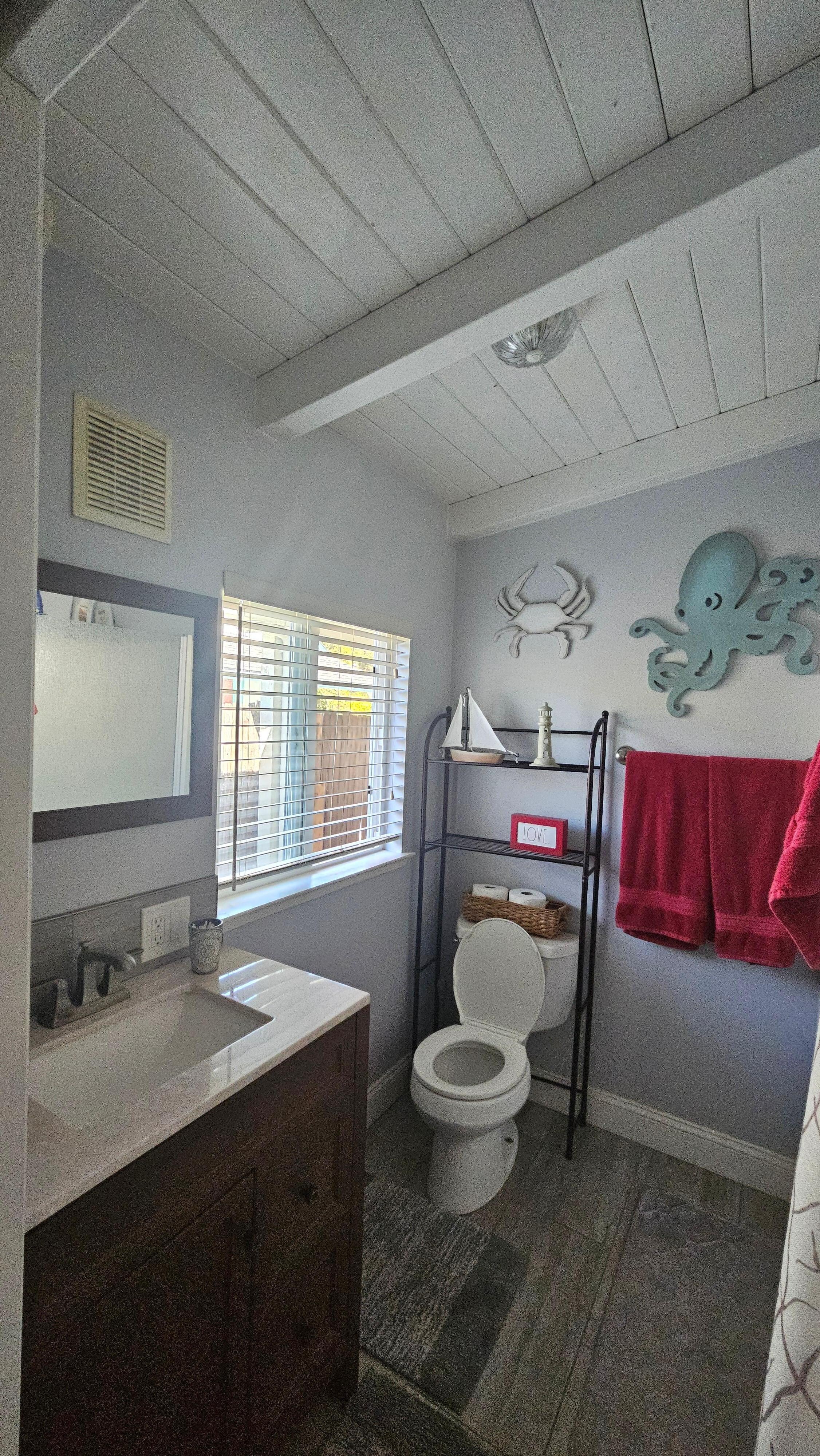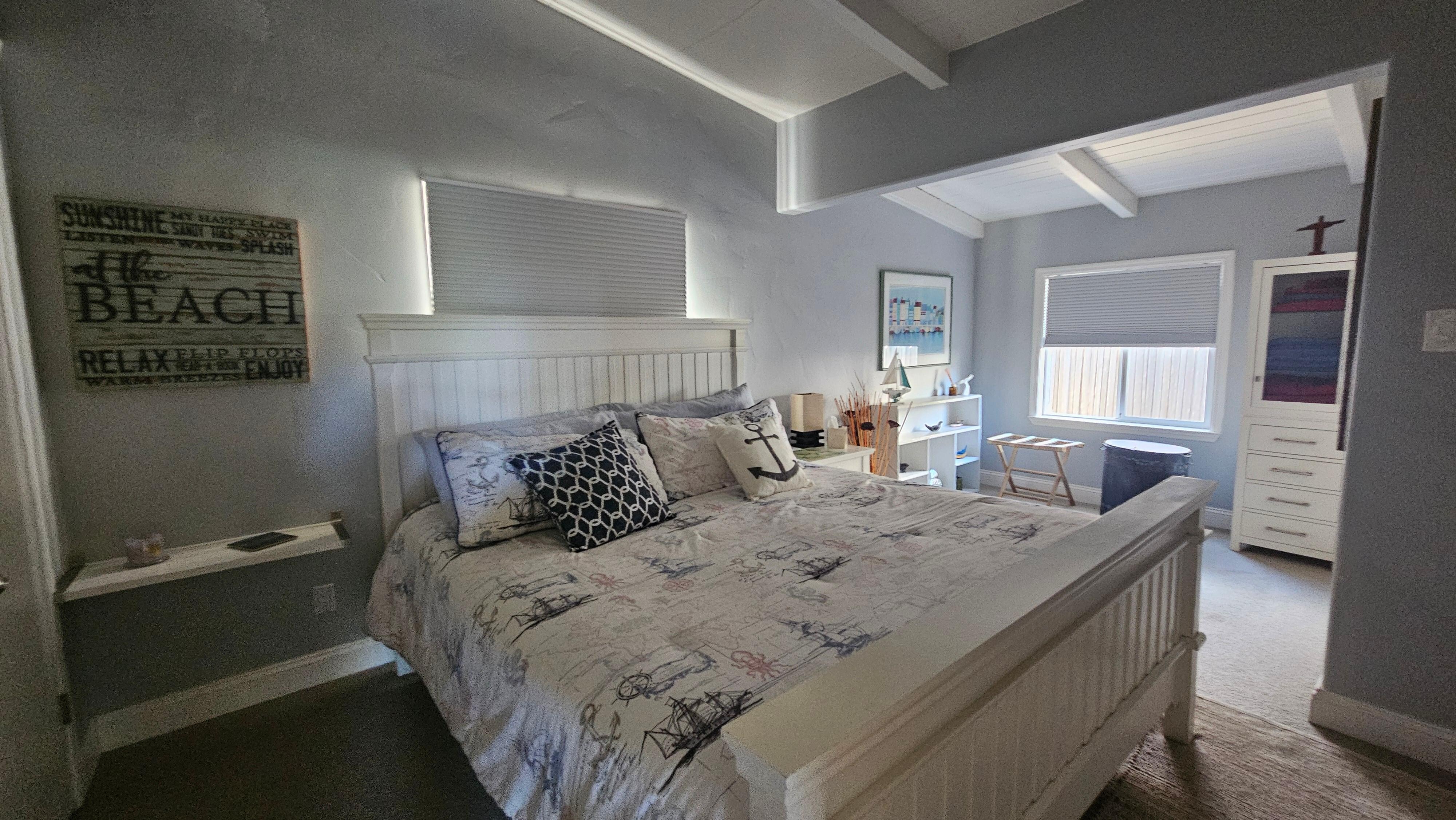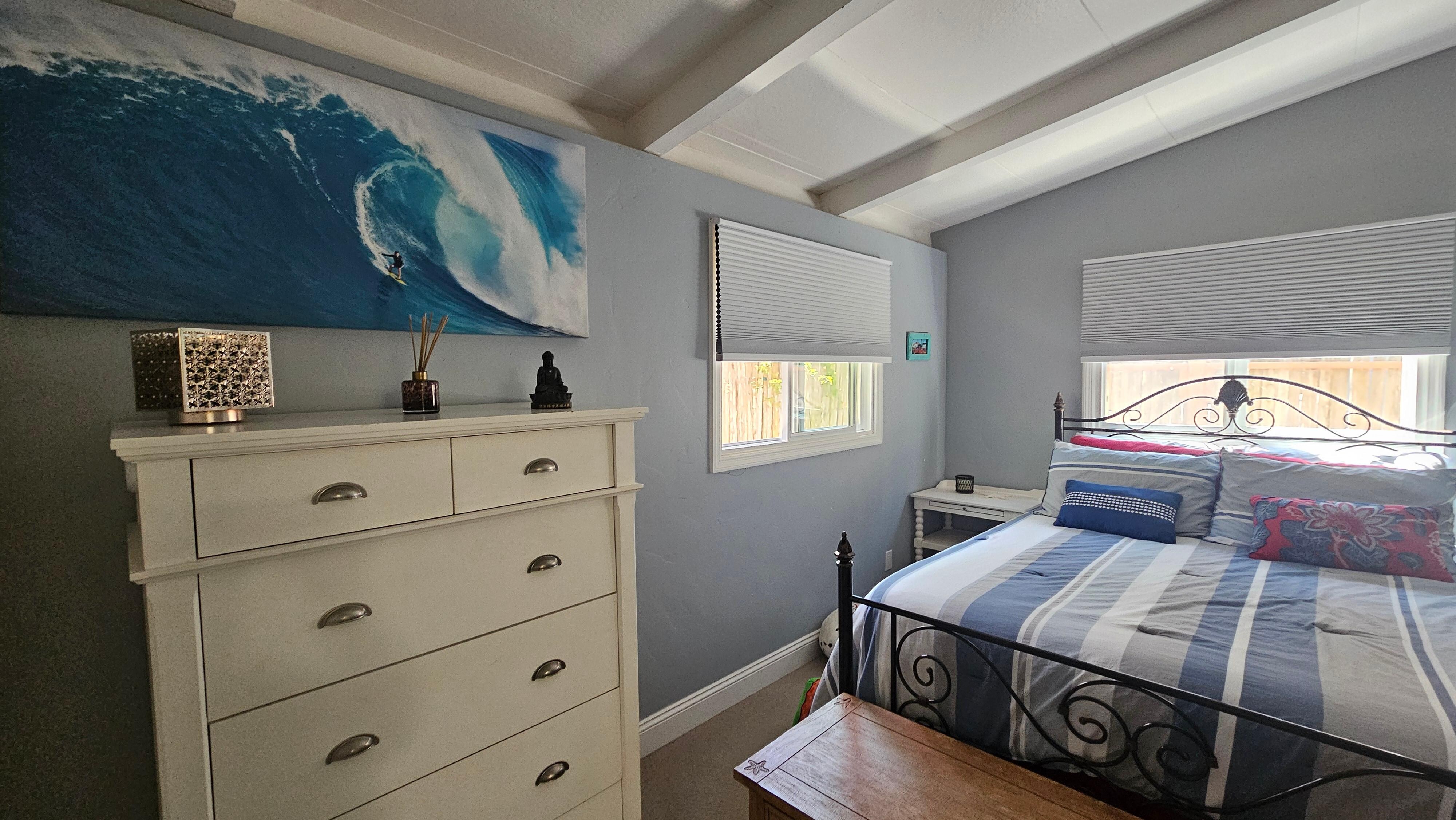 The Surfshack is a newly remodeled two bedroom, two bathroom cottage in Santa Cruz that sleeps up to six people (CA King bed in master bedroom, Queen in guest bedroom. Enjoy a wonderful open floor plan between the kitchen, dining and living rooms. Kitchen is fully stocked with everything you need to enjoy a meal at home (we provide coffee and tea.) The house is just a three minute walk to Black's Beach which is semi-private as there is no public parking available in the neighborhood. We are in the sunniest part of Santa Cruz. We're walking distance to a number of restaurants in the area so you don't need to drive once you get here, although there are many good choices in town! You can also bbq if you'd like. We provide body boards, surf boards, umbrellas, a wagon, beach towels and toys for you to enjoy a great day at the beach! You should have a good night's sleep in our comfortable beds and great bedding. Lastly, enjoy the front patio which lights up at night so you can enjoy the beautiful evenings of Santa Cruz! It really is a wonderful, relaxing home!