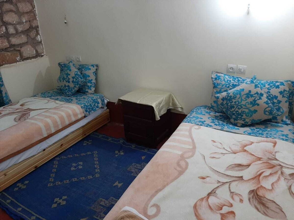 located between Ouarzazate and Ait Ben Haddou, near the kasbah where all the films are filmed (Game of thrones, Gladiator ...) and near the studios (Asterix l, The Mummy) Salwa and MOMO welcome you where Riad des Grotte ( 05 rooms with private bathroom). The family hotel has a swimming pool, air-conditioned rooms, wifi, garden. A plan on the discoveries. Breakfast offered. friendships