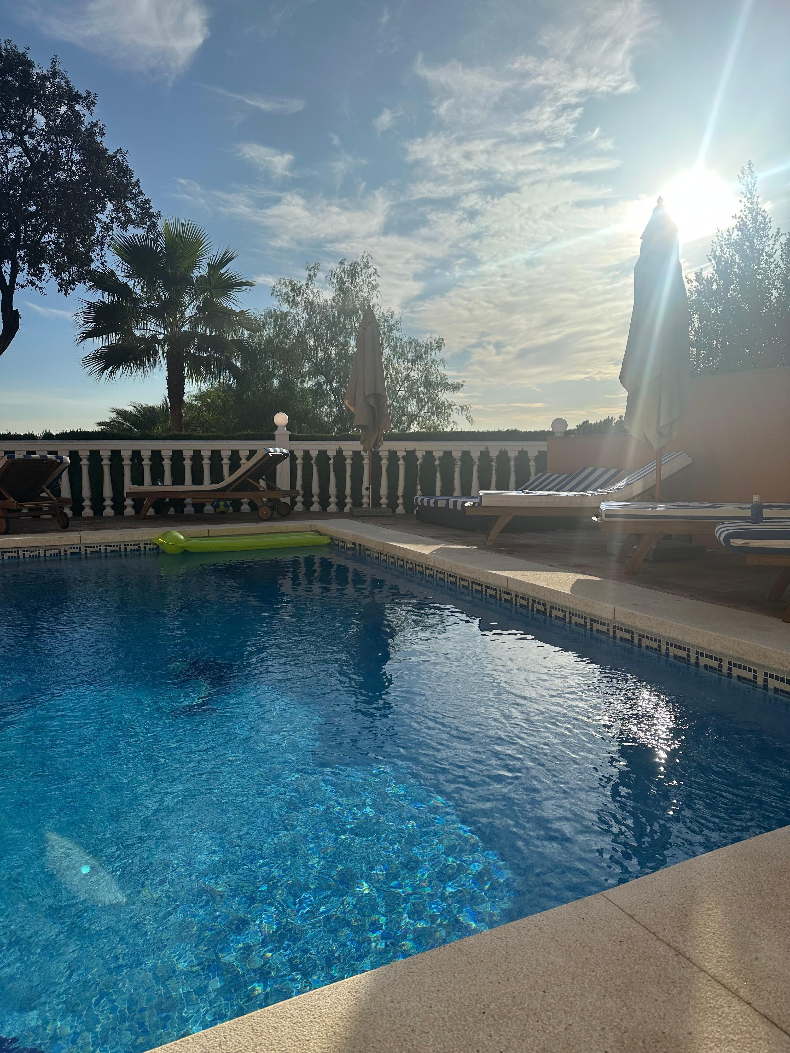 The villa has a double bedroom, 3 twin bedrooms and 4 bathrooms with a bath or shower. There is also a washing machine. Bed linen and towels are provided.