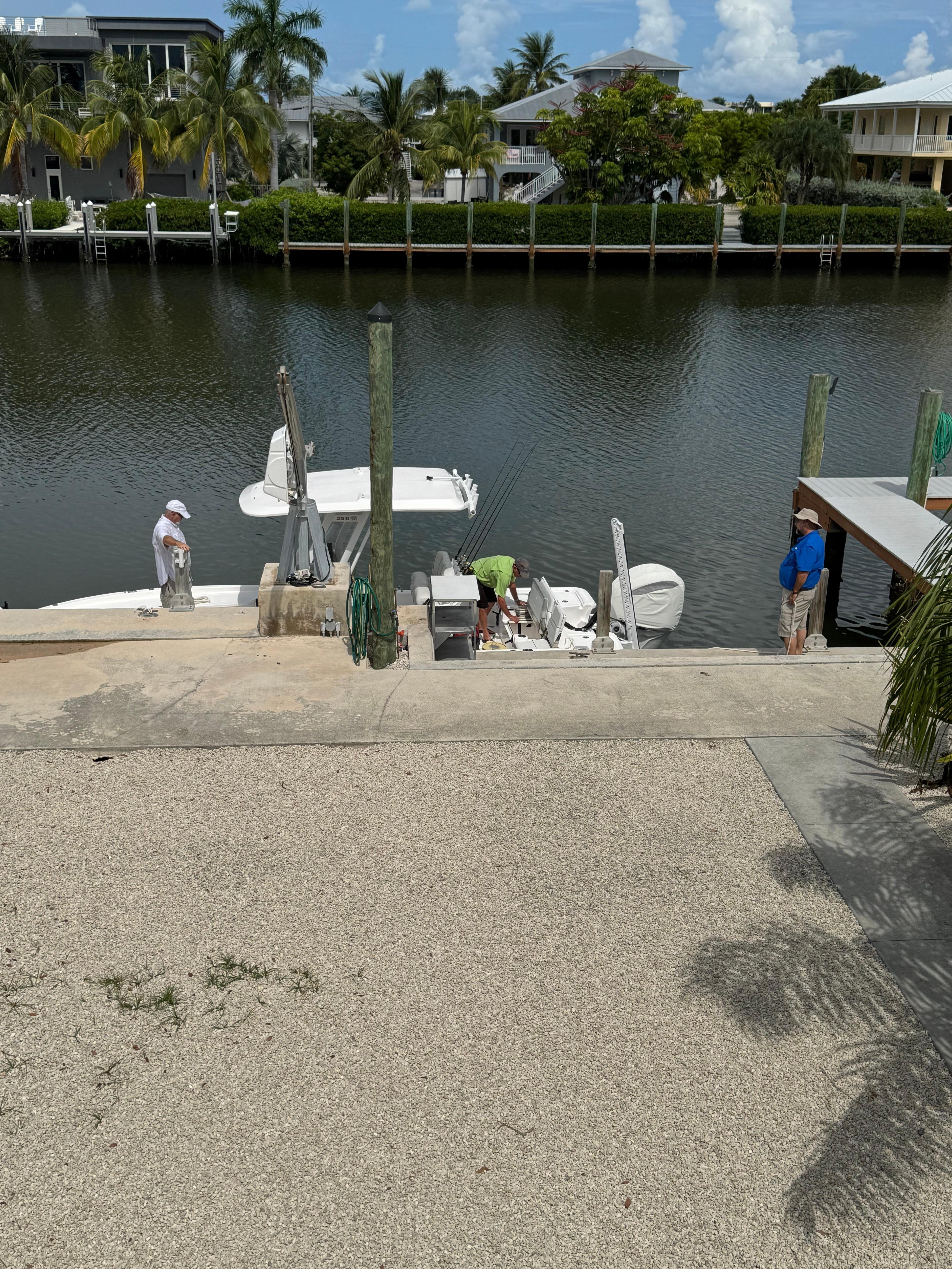 This 3 bedrooms 2 bathroom home is just what you've been looking for in a vacation home. Imagine having your boat at your 55 ft concrete dock enjoying the view of the 200 ft wide canal with open water views of Bonefish Bay! Paver drive and covered parking will shield your vehicles from the elements as well as a huge space for trailer parking on property. There is a shared stairway to the entrance of this home.