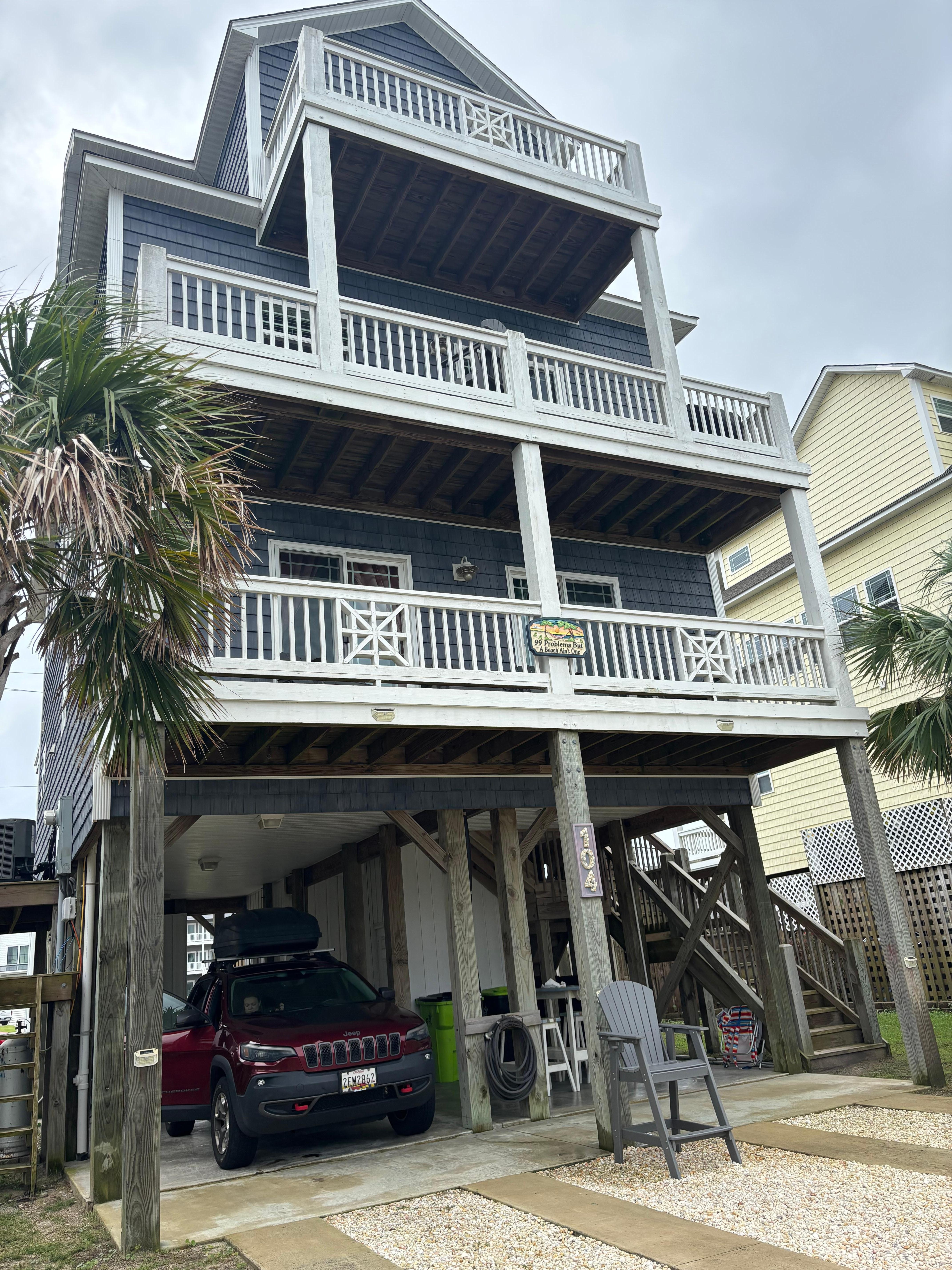 The Beach House has plenty of room to enjoy the outdoor island life with 3 covered porches and 3 sun decks. The front porch has 4 captains chairs and 2 end tables to enjoy a cup of coffee or glass of wine with your family, while soaking up the beautiful views of the Atlantic Ocean.