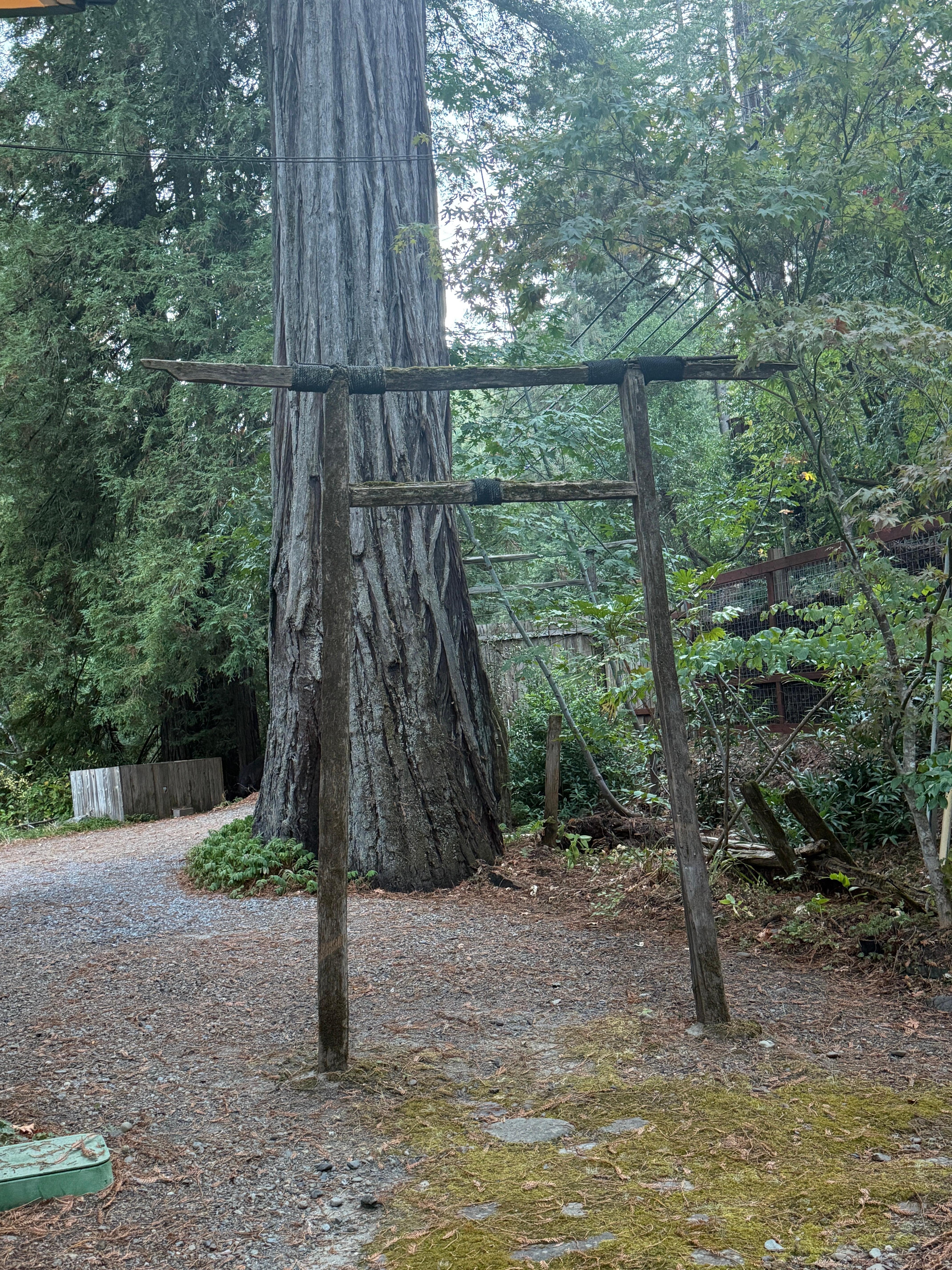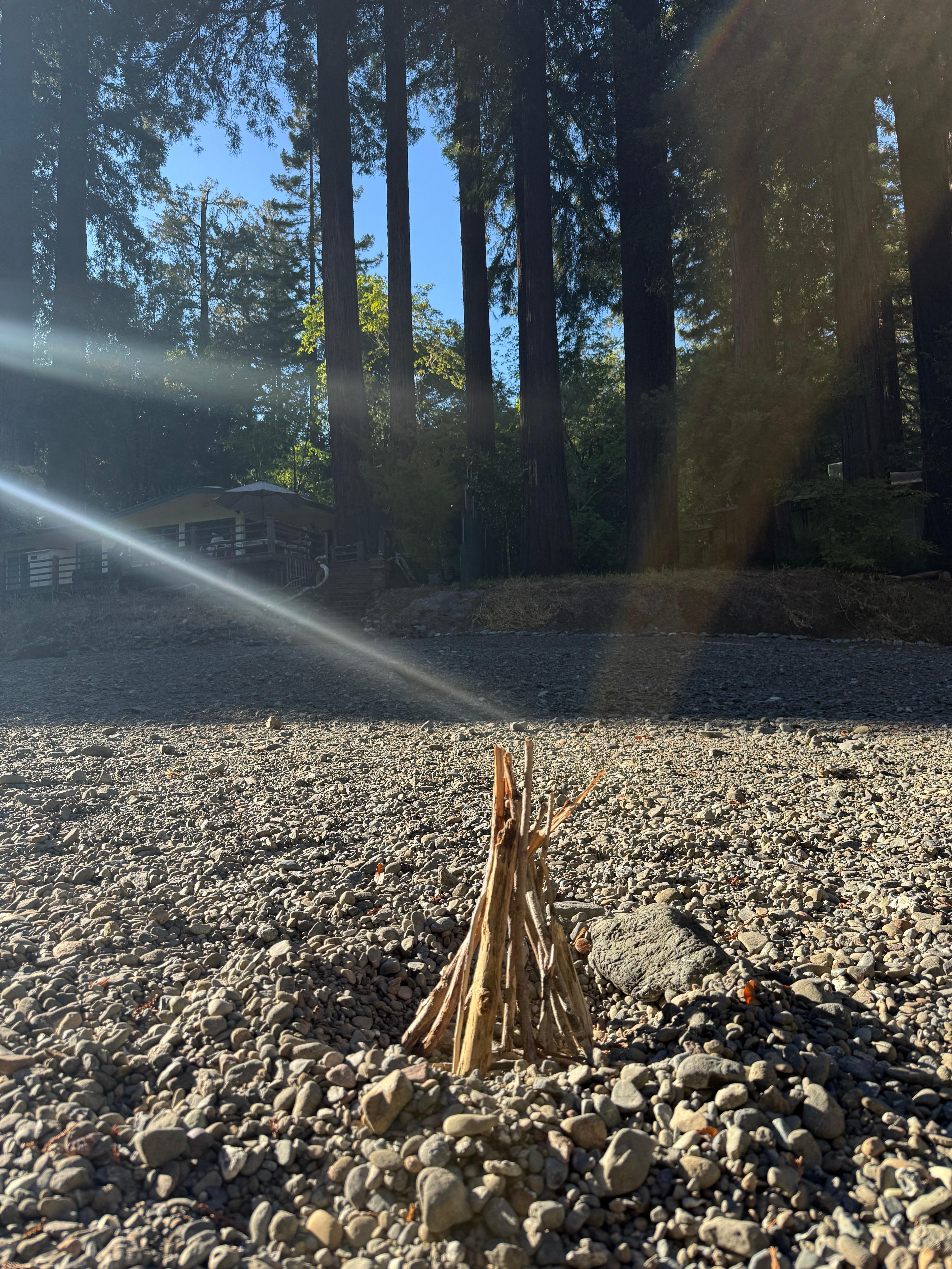 • • Hot-water shower outdoors at the foot of magnificent redwoods.