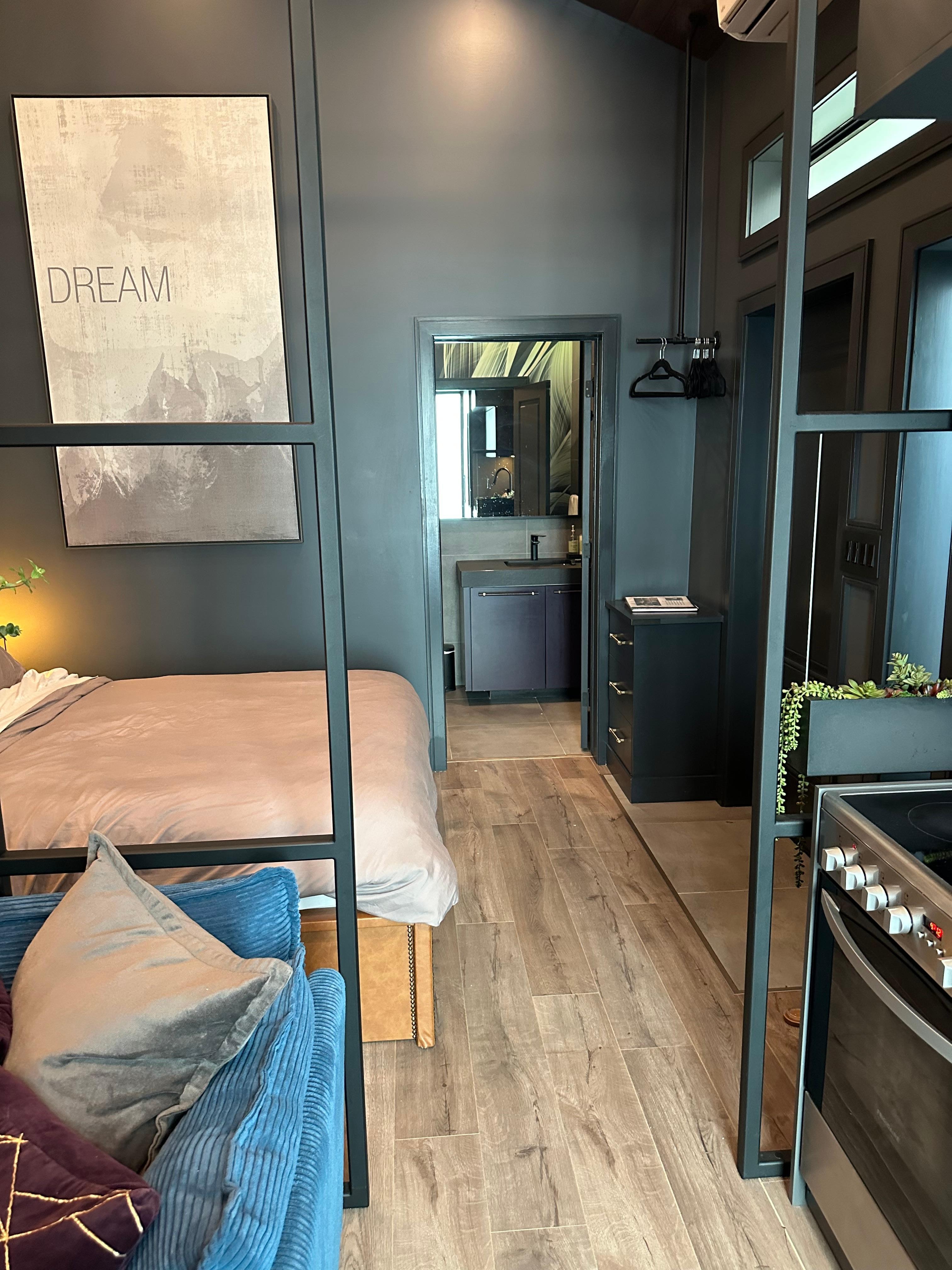 The space is approx 235 sqft so it’s the epitome of tiny house living! We have tried to pack a lot of punch into the space so we hope you enjoy it.
