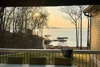 Absolutely fantastic lake home with big water views. Deep water dock perfect for swimming, fishing and boating. Sandy beach with shallow water great for children. Fully renovated home with two separate living areas. Upstairs living has large open kitchen with views to lake, smart TV and plenty of space to gather. Four large bedrooms and three baths without any steps. On the stepless main level there are two master suites with king size beds and adjoining baths. Queen bedroom with bunk beds and an additional bedroom with queen size bed. Large deck and covered porch with beautiful lake views. Nothing better than mornings on the porch! On the terrace level there is another king bedroom and private bath. Game room with Smart TV, pool table and lake views. Three total en-suite bedrooms all with king beds. Large level yard for backyard games and an outdoor gas grill for cooking out. Concrete walkway to lakeside dock with umbrella, table and chairs. Lakeside fire pit for evening fun. 4 kayaks and one standup paddleboard. House is located at the peaceful south end of the lake.