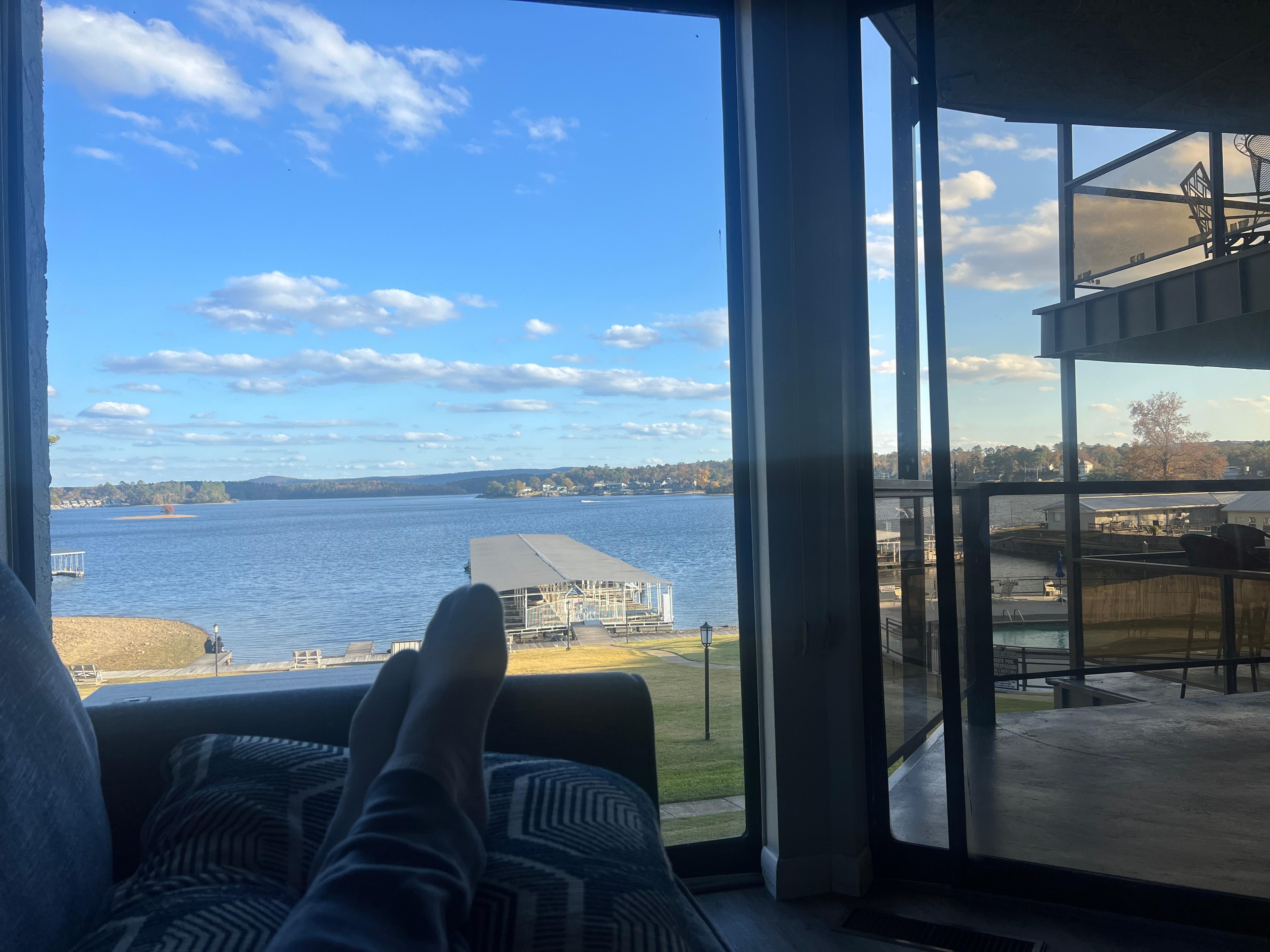 This condo is in a quiet condo complex on the shores of Lake Hamilton. We have a great view overlooking the swimming pool, boardwalk, and of course the lakefront water view.