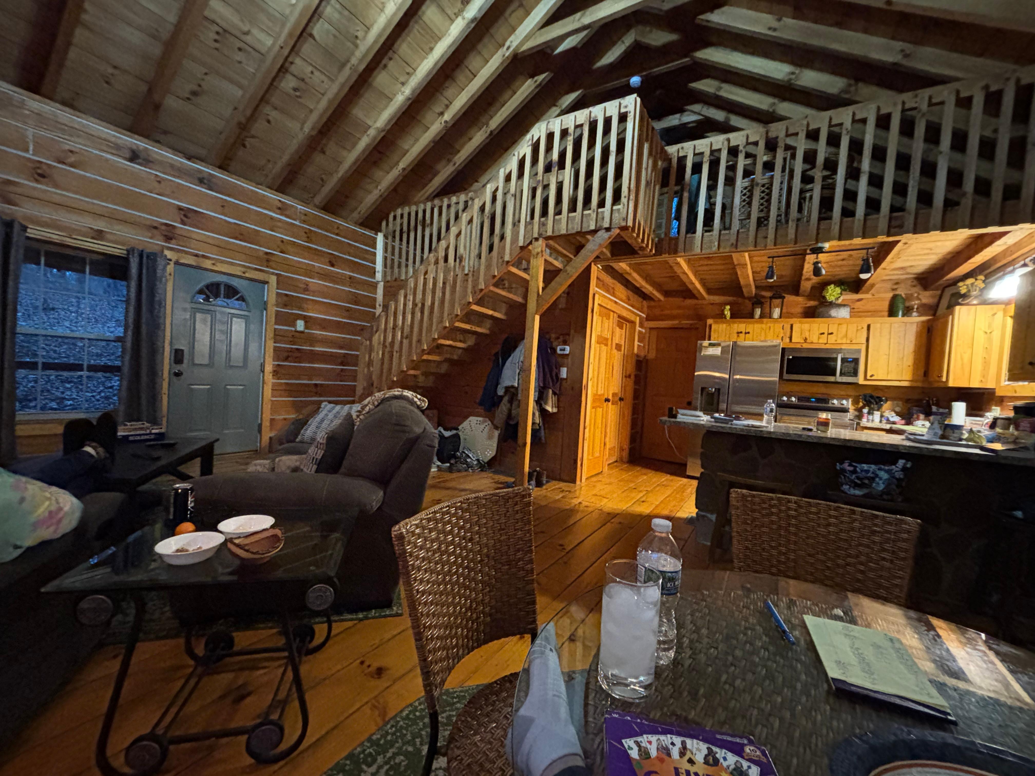This cabin is designed for comfort and enjoyment, featuring a cozy wood-burning fireplace, a spacious kitchen, vaulted ceilings, and a Flat screen HDTV with Satellite for entertainment. Revel in modern aesthetics with updated decor throughout.