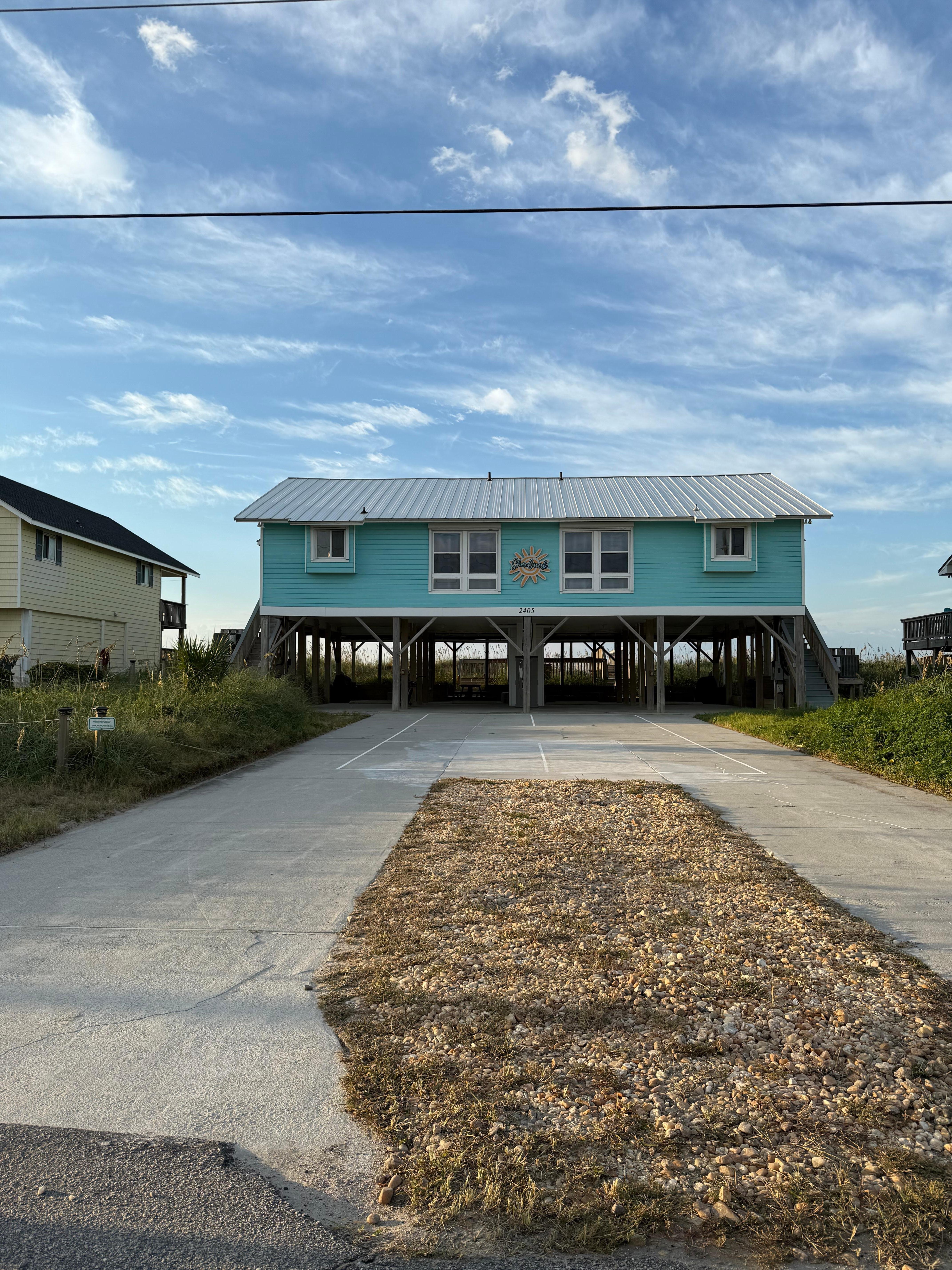 Under the house: Foot wash on dune walk for quick rinses . Open hot water shower. Parking for 4 vehicles under the house in the shade. Hot water hose for rinsing salt spray off windshields. Gas grill under the house that uses small green camping canister only. Canisters provided by guest and can be purchased at local grocery and hardware stores for about $4 a canister that lasts 2.5 hours on medium high heat.