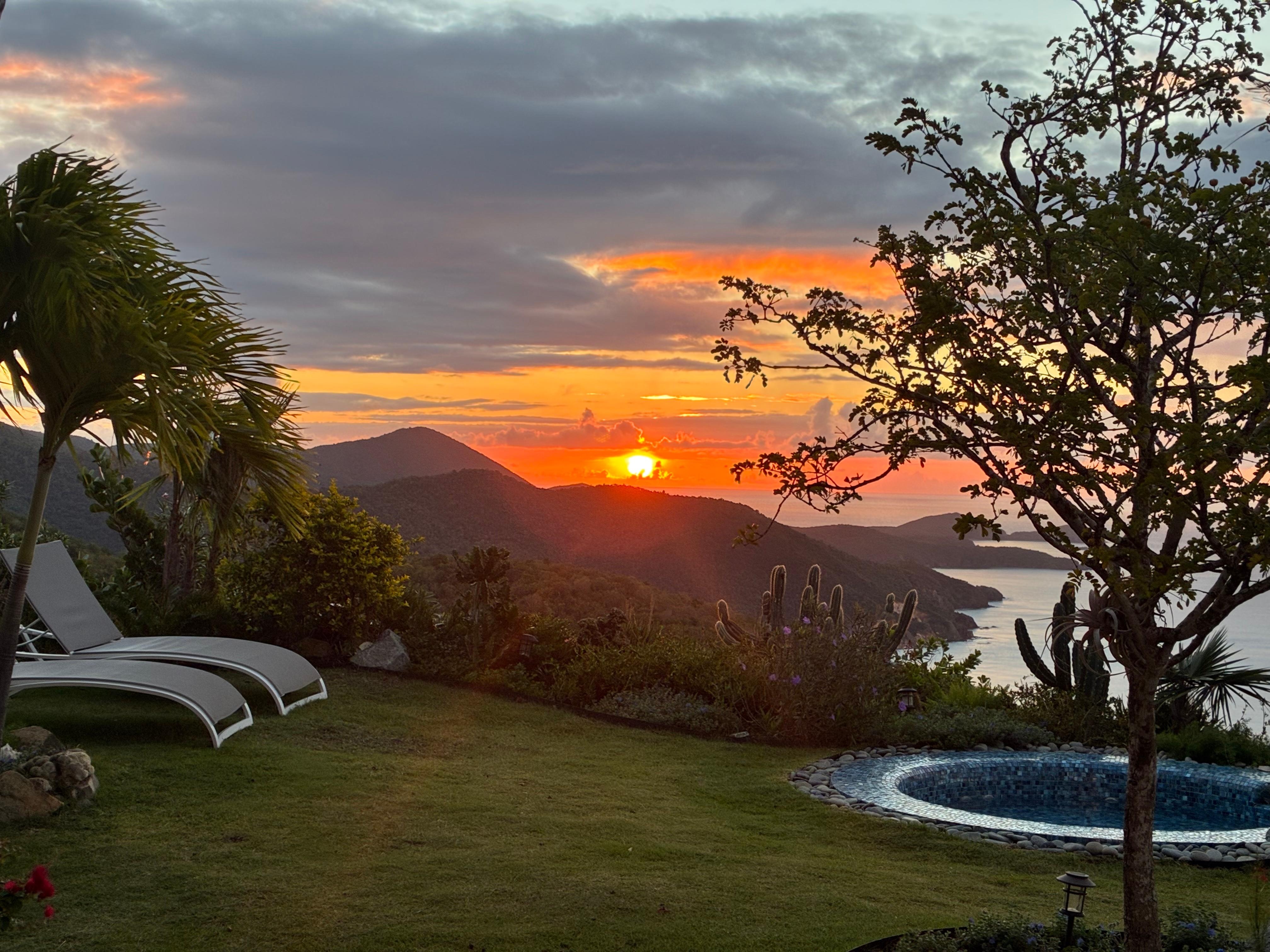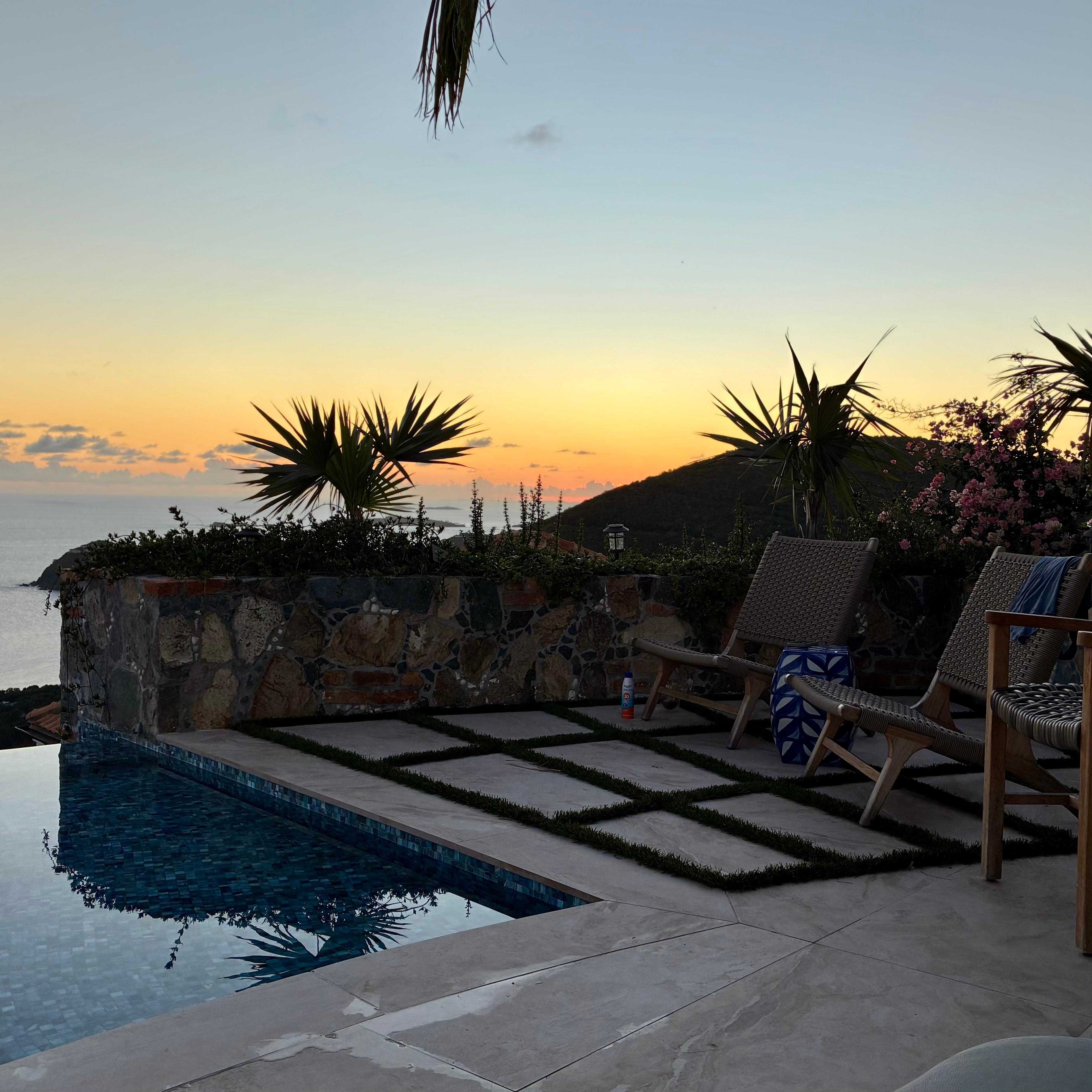 Sol Inclination is a sun-drenched, secluded, tropical island retreat. This stunning four bedroom four and-a half bath luxury villa (located in Skytop, on the very top of Estate Fish Bay) commands nearly 360 degree sweeping views that will truly leave you breathless. Enjoy captivating sunrises over Ram’s Head and sunsets into Chocolate Hole.