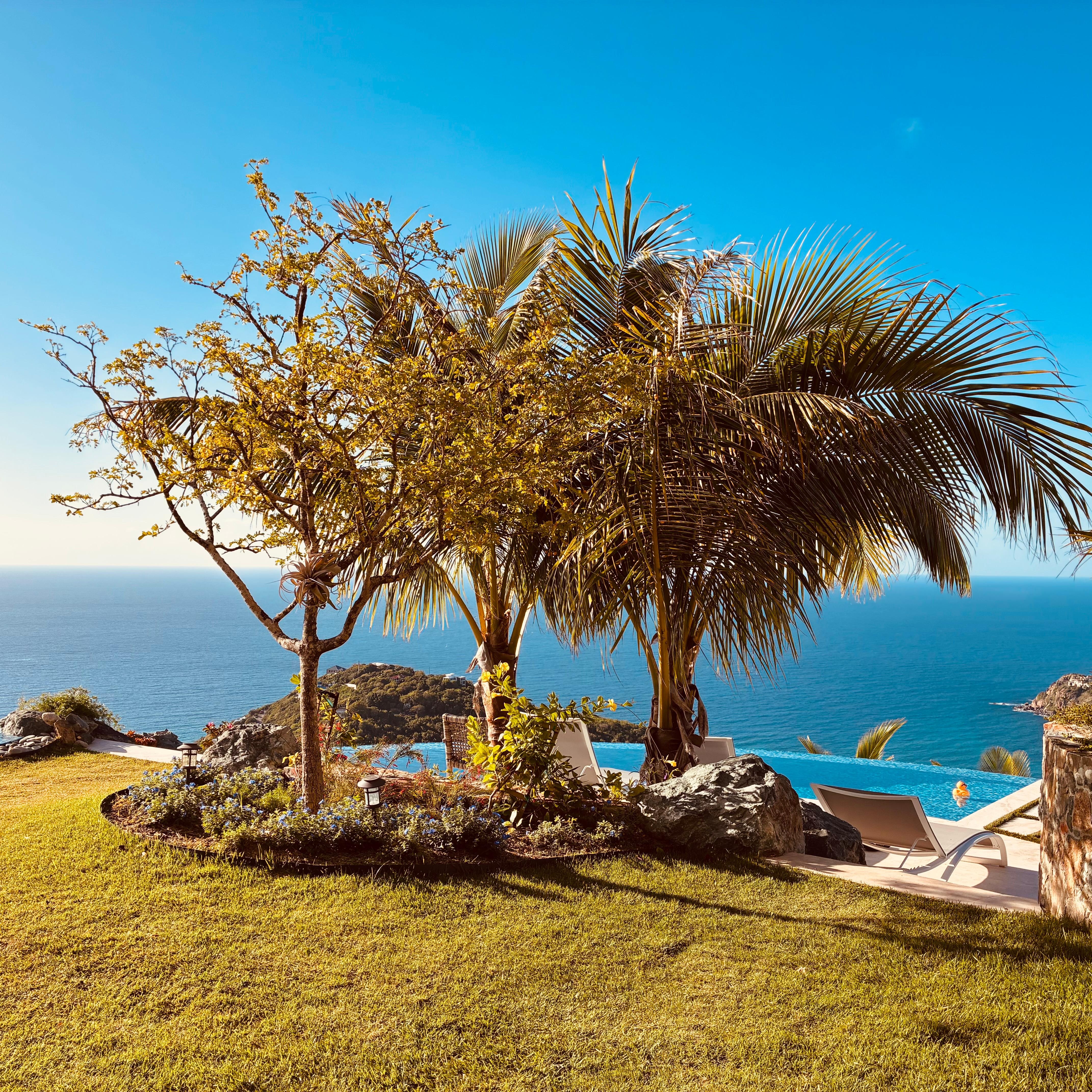 The Guest House interior living space is 1040 square ft. which features 2 California King ensuites, mahogany kitchenette (sink, microwave, blender and fridge),as well as a large covered veranda. This prestigious villa, with over 5,000 square ft. of living space is ideal for one, or two families.