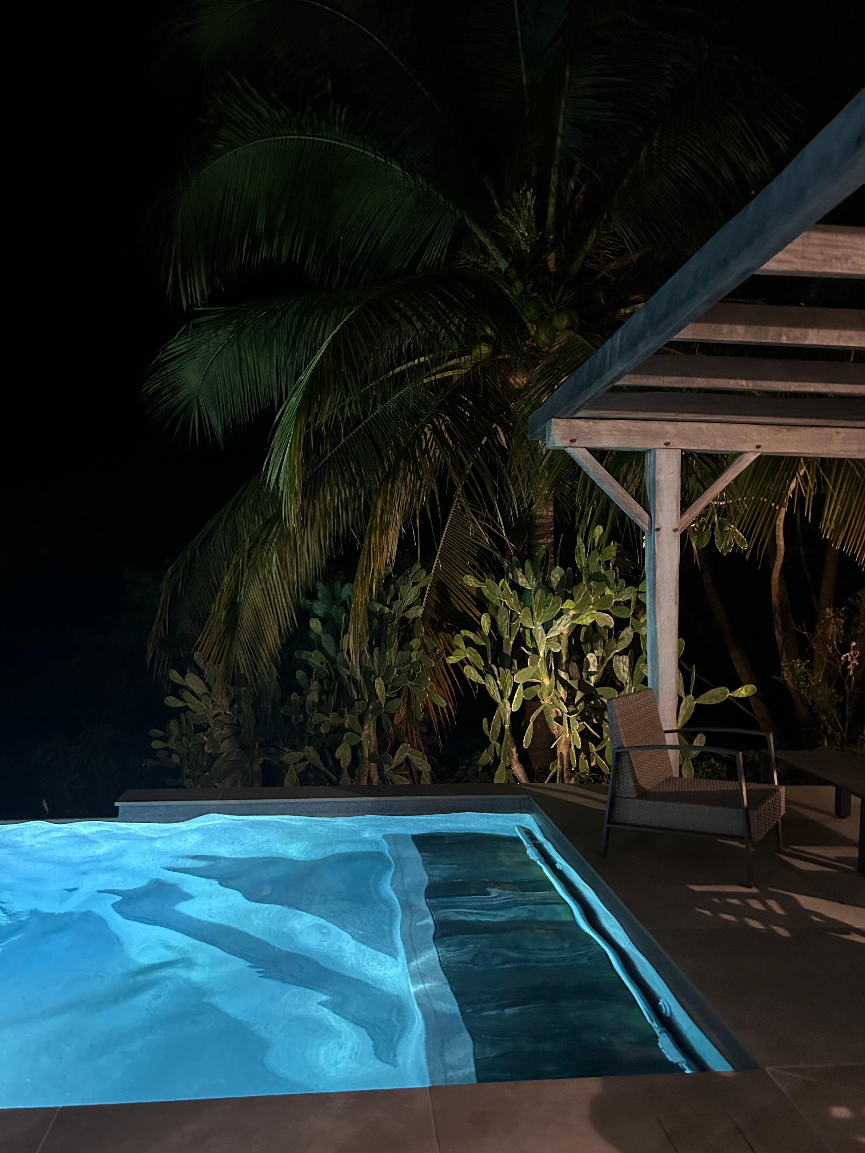 La maison idéale, accueillante, agencée pour que chacun y trouve sa place sans qu’on se marche dessus, pas de vis a vis, une vue sur la forêt tropicale magnifique, la proximité quasi immédiate du village des anses D’arlet (on peut facilement y aller à pied, même si le retour est un peu plus ardu à cause de la pente cela reste faisable).
