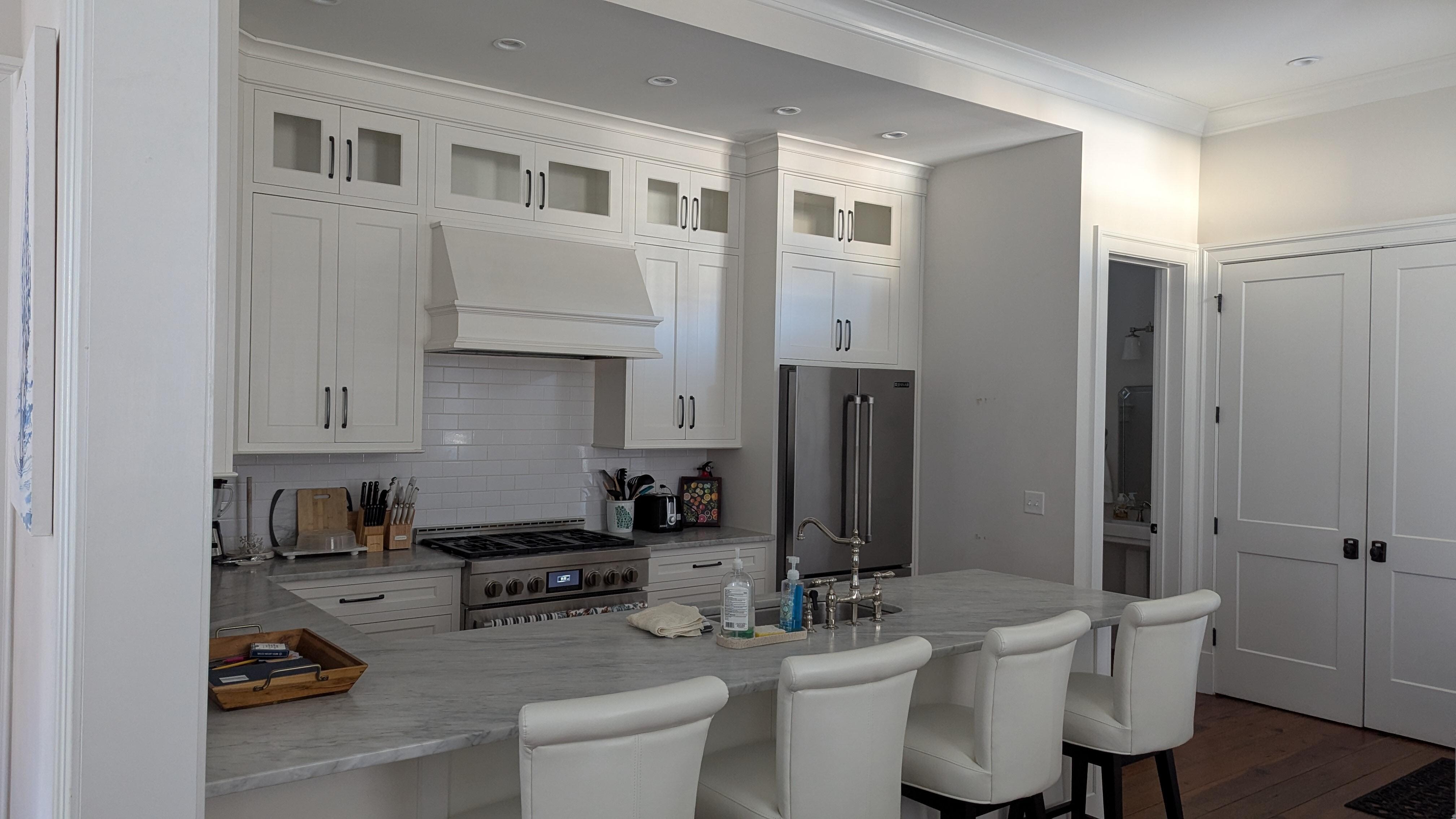 Walk up a short set of stairs from the sidewalk to enter the main home. The main level features a bright and inviting living room, well-equipped kitchen with high-end stainless steel appliances, marble countertops, and a formal dining area. Cook a meal together as a way to catch up, or let a private chef do all the hard work! The open floor plan creates a convivial atmosphere, allowing you to keep your guests entertained.