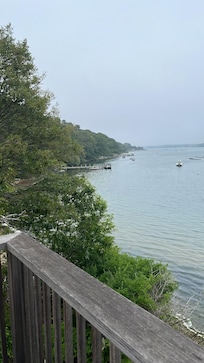 The main (upper) level features an open living plan with high, soaring ceilings and multiple glass sliders leading out to a spectacular, wrap-around deck overlooking the glistening water. Airy living room with gas fireplace, gourmet kitchen with gas cooking, and everything you need to help prepare fabulous meal. Included but not limited to: Lobster pot, garlic press, salad spinner, a stemware (Flutes & Wine), new cookware and more! Advanced water filtration system in place as well. Dining room and a separate den/seating area and ½ bath complete the upper level.