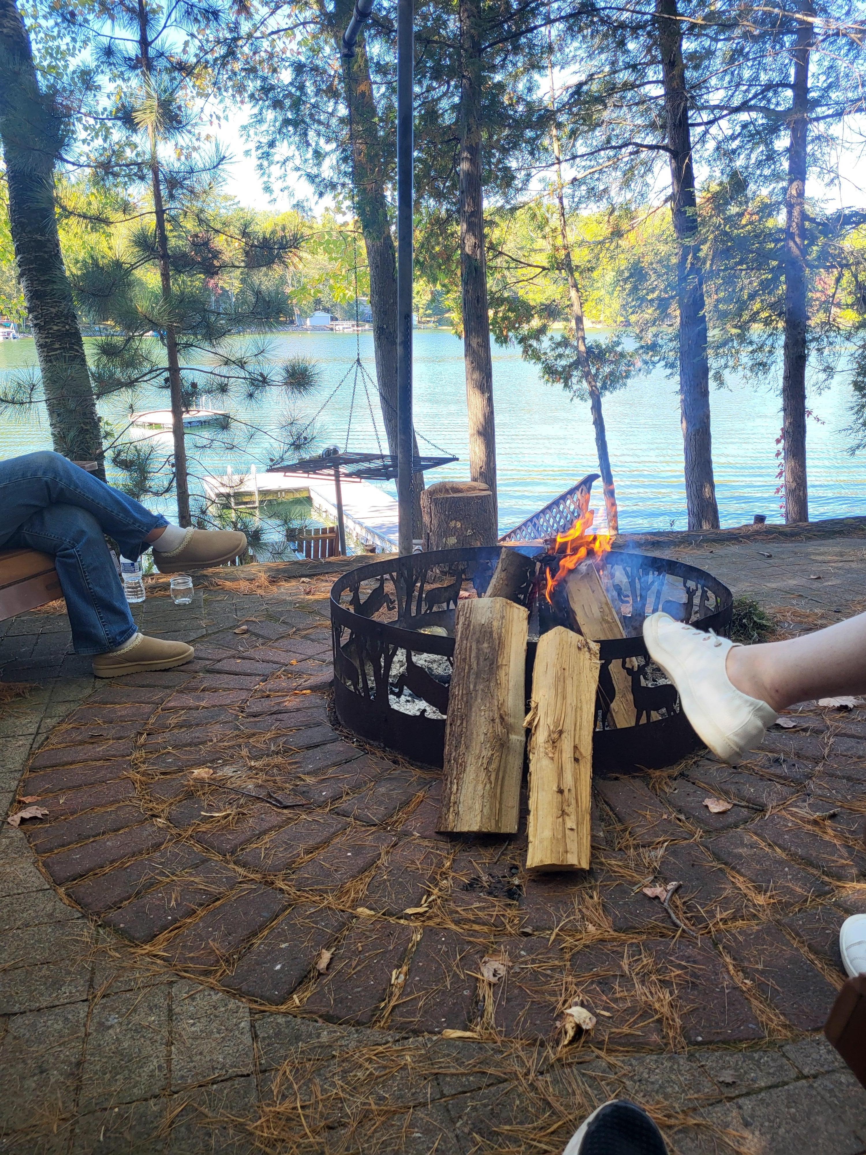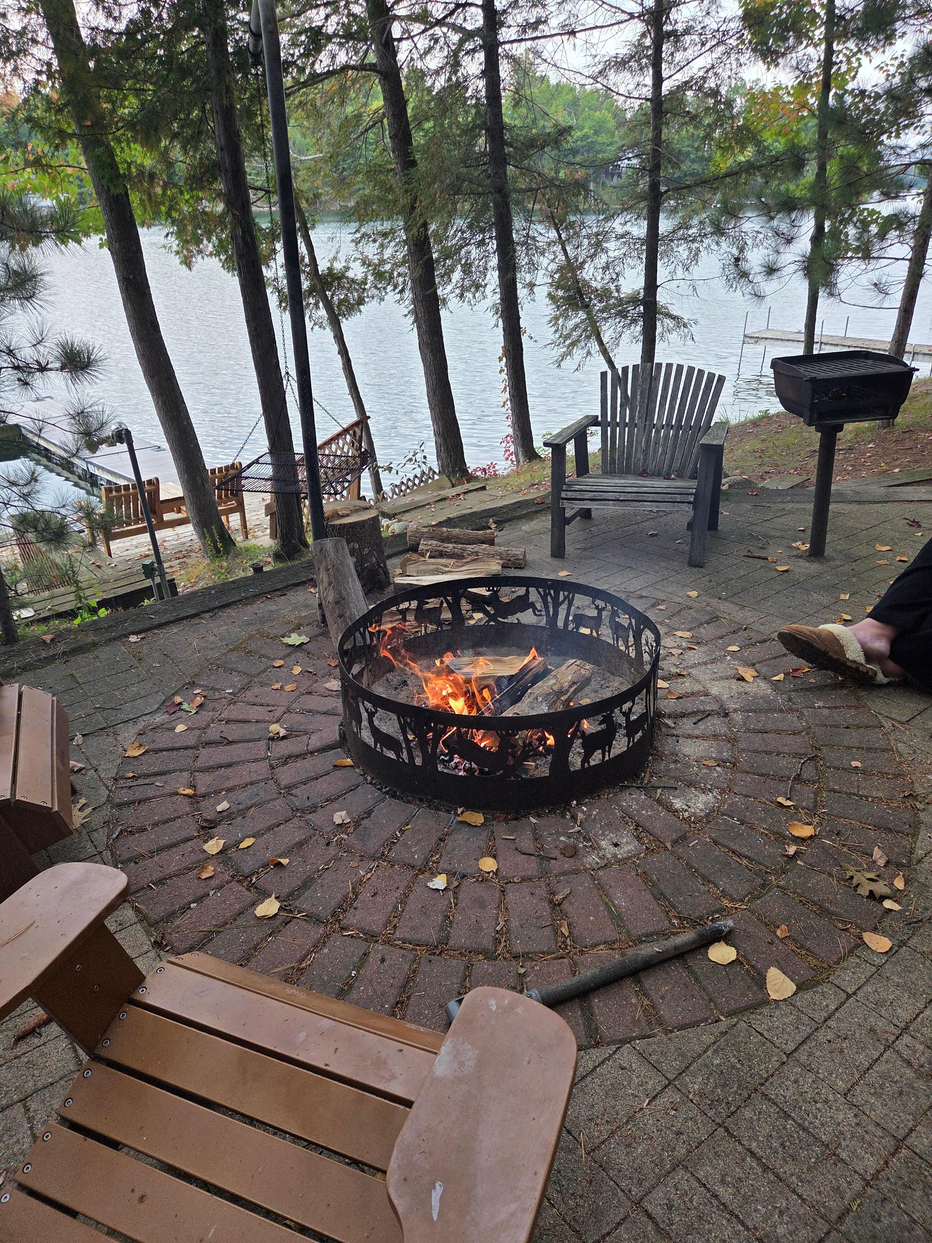 Large fire pit area overlooking the lake. 3 kayaks, stand-up paddle board, pedal boat and various water toys (skis, kneeboards, wakeboards, tube, etc) are included.