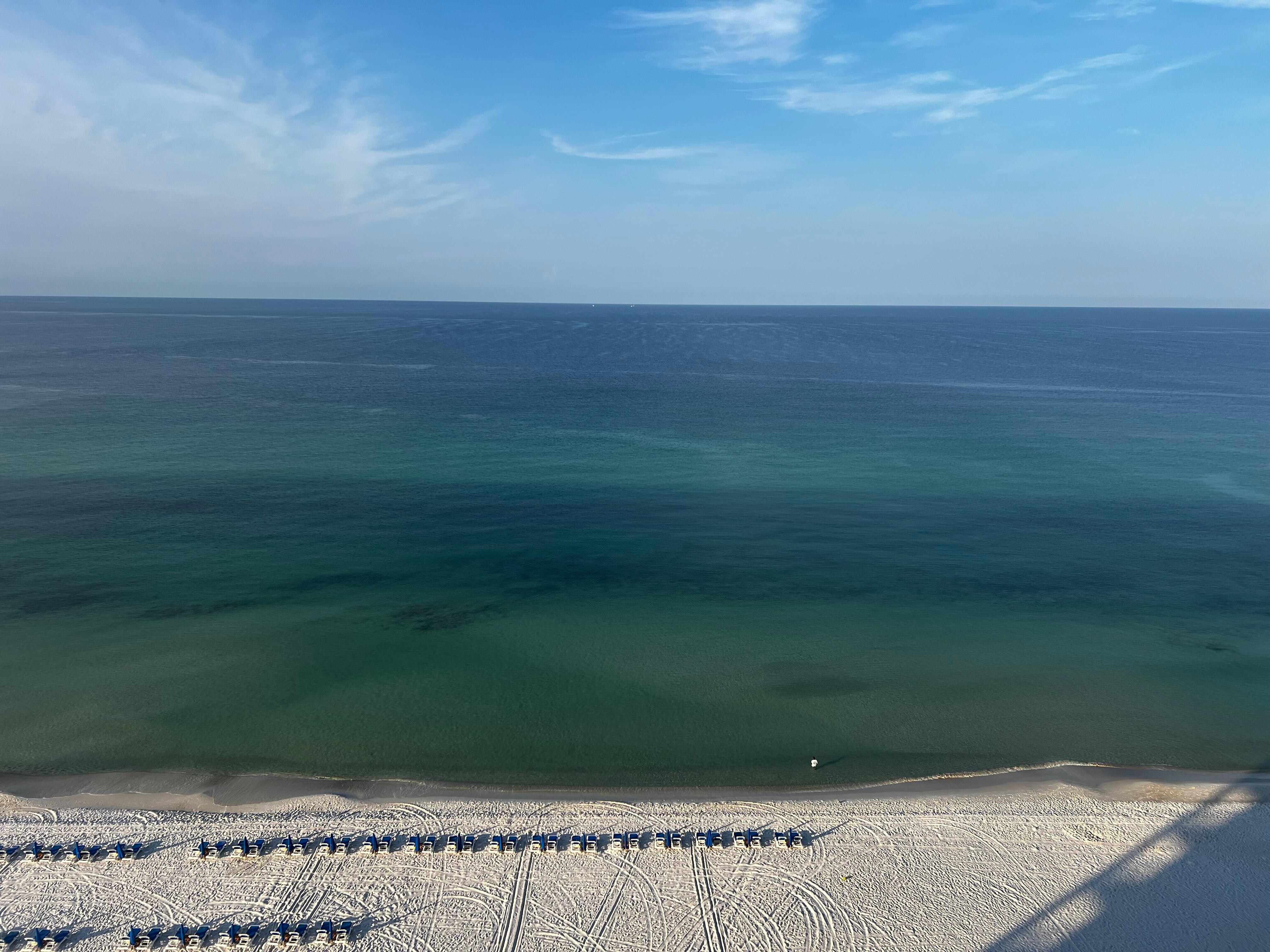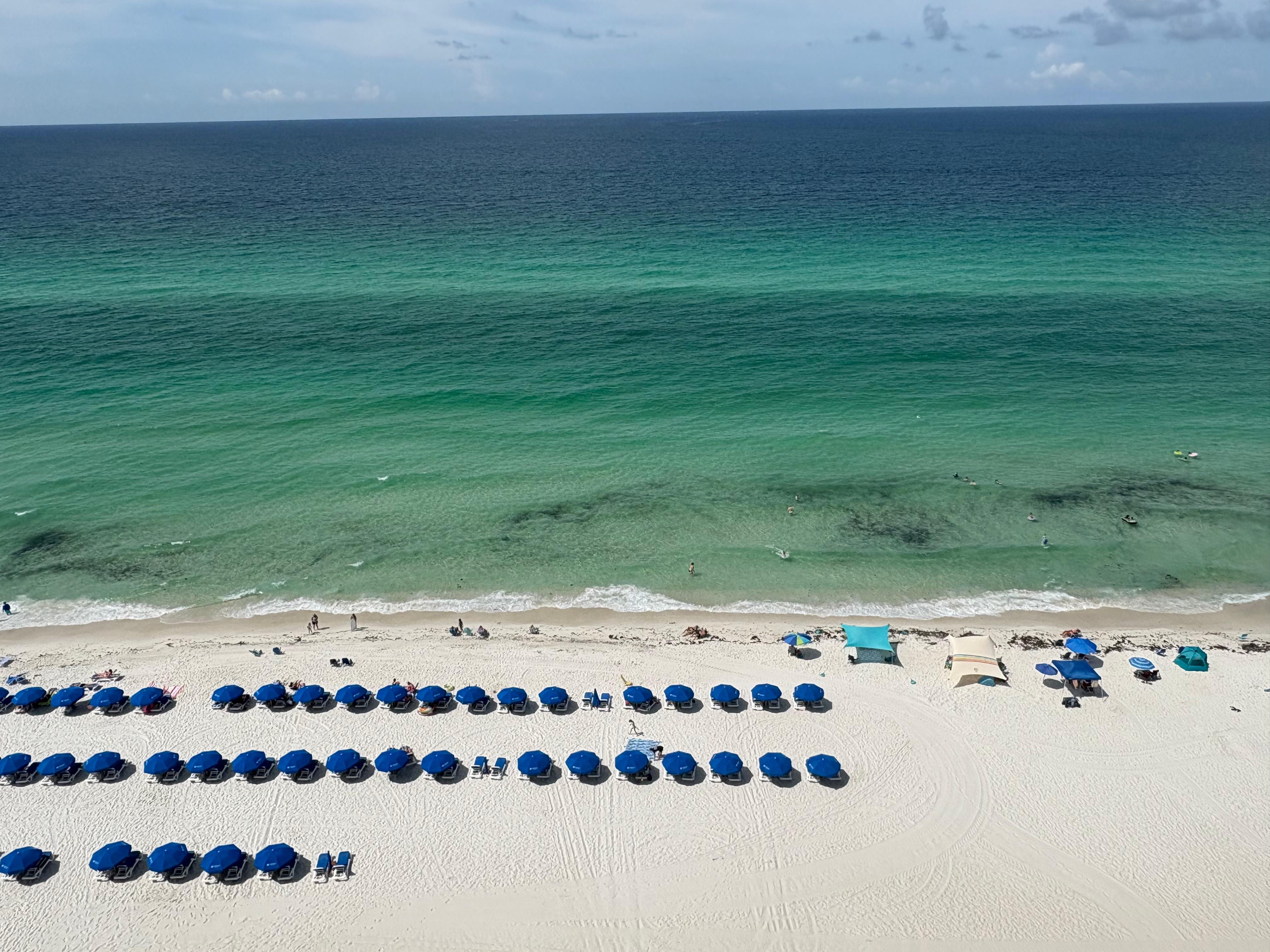 Large 2 Bed / 2 Bath, Beach Front condo in Panama City Beach Fl. is directly on the Gulf of Mexico. Fresh Paint in every room. You have direct beach views from all windows and doors. Our condo is on the thirteenth floor, you can hear the waves crashing on the white sand beach below when the large sliding glass doors to the balcony are open from the living room and master suite. You are so close to the Gulf, you'll be able see dolphins and fish swimming by each morning. Our second home has a very large spacious living room with new furniture, tile, paint and 55” smart television’s in both the living room and master bedroom, Netflix, HBO and the like are free. The two master size very spacious bedrooms with two on-suite bathrooms. Two separate closets in the bedrooms as well. The main master has spectacular Gulf views from the full wall size sliding glass door and brand new king mattress and linens. The second bedroom has new mattresses as well. The custom cabinetry in our kitchen is accented with fine granite counter tops, new Whirlpool cooktop and dishwasher, refrigerator is Frigidaire and reverse osmosis water for drinking and coffee lovers. We've totally stocked the kitchen with Cuisinart pots & pans, dishes, cups & glasses and the drawers are full of cooking and eating utensils. Also brand new.