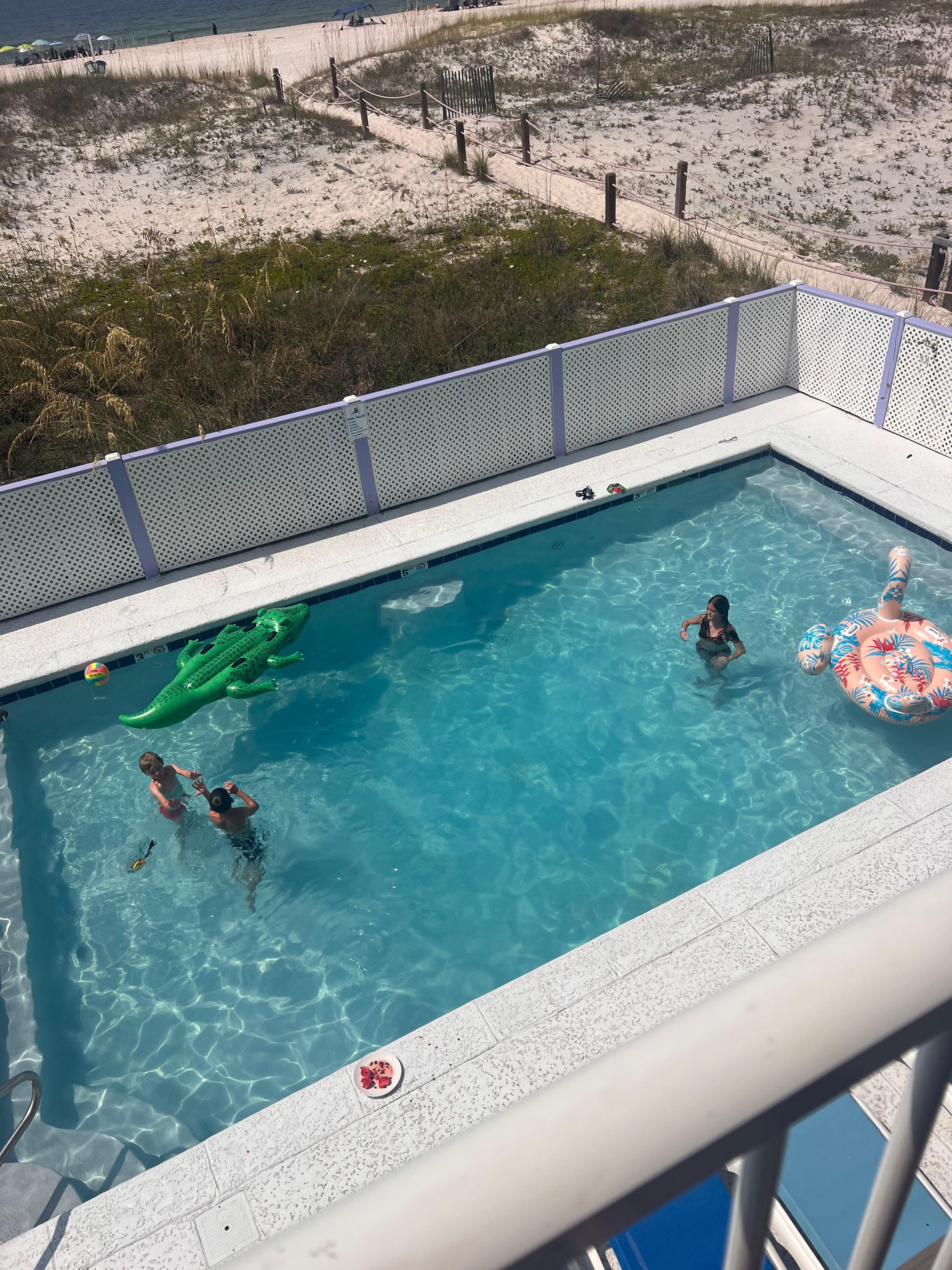 BIG outdoor pool (shared only between the two sides). 30x16x3-5' rectangular bit of beachfront bliss!
