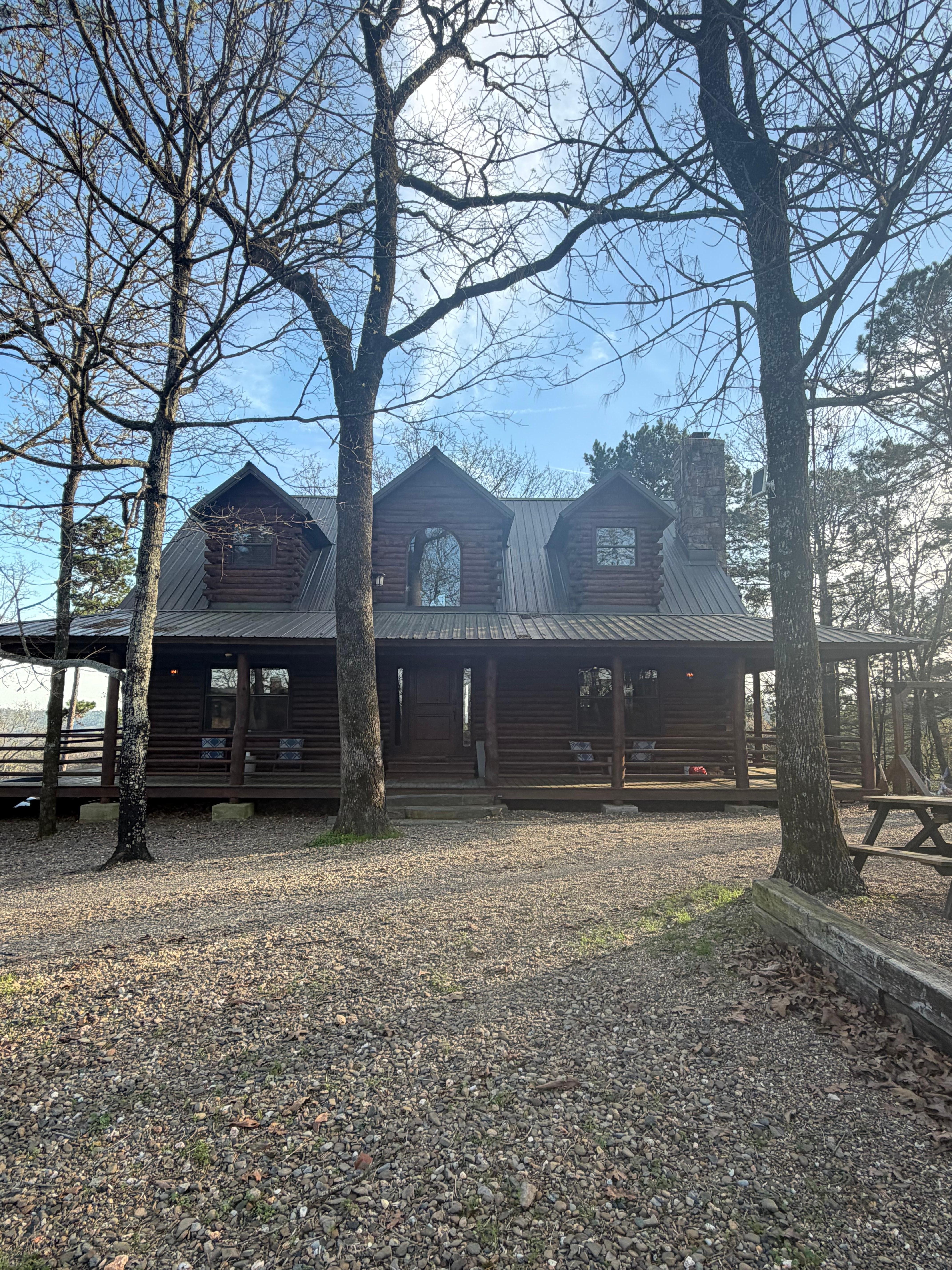 Welcome home to Big Sky Mountain Lodge -Your 3 story luxury cabin located right off the National Forest boundary on 2 acres. Soaring pine & hardwood trees along with mountain & lake views await you as you pull up. Perfect for families and groups traveling together, the home is equipped with 3 Primary Suites with KING beds, 3.5 baths and a bunk room that sleeps 6, game-room downstairs with separate living space for the kids including their own bathroom and living area . Huge Kitchen fully stocked and equipped for your get together with family and friends. Sprawling Living Area with gorgeous couches/seating and ROKU Smart TV w/ streaming YOUTUBE TV cable service/NETFLIX/AMAZON PRIME and many other apps. Wrap around porch on walk in level with tons of seating for watching the sunrise/sunset or the fog coming off the river roll over the mountains and tree tops. Watch the kids play on the playset or large swingset from your covered porch. 8 person Hot Tub Downstairs with bluetooth speakers mounted for enjoying some chill time. Master bedroom on main walk in level is a true spa retreat with huge jacuzzi tub & walk in shower with bench, double vanity and large wall to wall mirror. Also has a 60" SMART TV w/ streaming cable. Upstairs bedrooms are enormous with lots of space to spread out. Included in upstairs bedrooms are 2 additional fold out beds and a pack n play to help you accommodate everyone in your group. Private deck Perch right off one of the upstairs rooms with designer rockers and table for having some morning coffee alone or just some quiet time. Cornhole, championship ping pong table, giant connect 4 and a 2000 game video game console located downstairs. Also PACMAN Arcade system downstairs. We are less than 100 yards from an amazing hiking trail system that goes on for miles - Just walk out the door and take a hike! Go to the left on the trail and hike past streams and rivers and spot deer, fox, & rabbits. Go to the right and hike directly down to the mountain fork river. The trail will lead you right to a fantastic area on the river where you can swim and spend the day with family/friends so bring a backpack and enjoy. We are just a few minutes from various restaurants, zip lining, the lake, river, fishing, shopping, axe throwing, go carts, train, horseback riding and the state park. We're in an exclusive community of 3 cabins on top of the mountain on over 6 acres. If you're interested in booking multiple cabins, we have accommodations for 44 and can work with you if the dates are open! 8 sticks of firewood provided year round for each guest. We have an EV LEVEL 2(NEMA 10-30, 30A/25', 6.6KW / J1772 30A Level 2 EV portable Electric Vehicle Charging Station ready for your use out by the driveway as well at no additional charge. We are experienced rental property owners and managers and take excellent care of our guests. We have racked up over 2000 (5) star reviews on our other cabins !