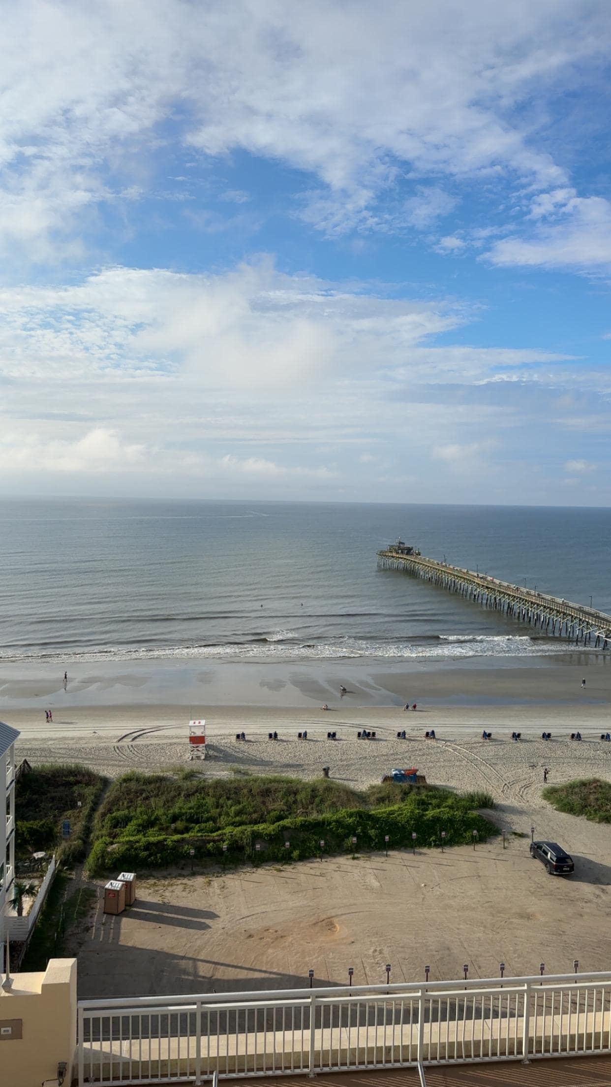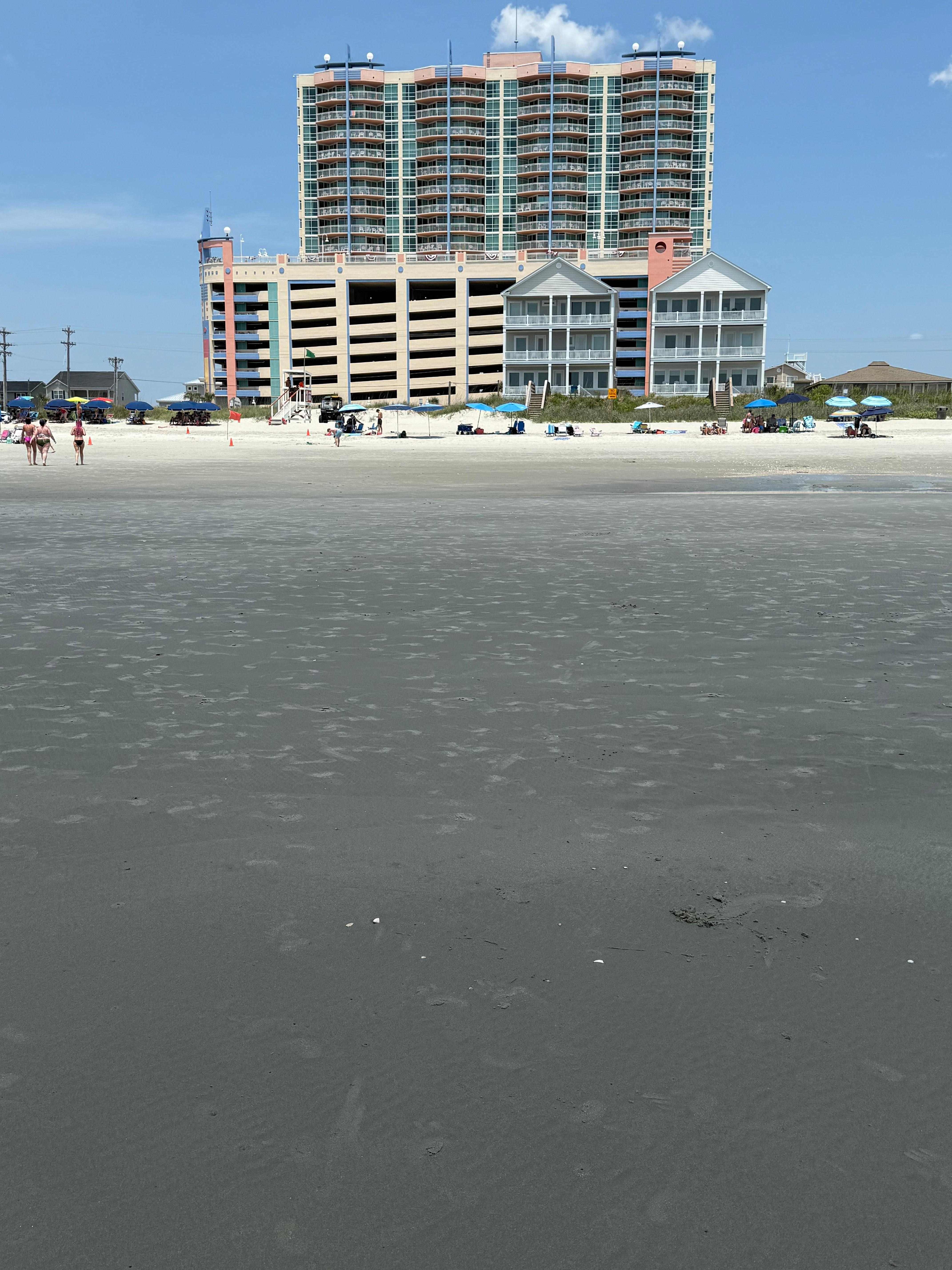The condo is located in Tower 2 above the parking garage so no need to haul your luggage across the street. Two parking spaces are provided. The garage has a height limit of 7'0" and motorcycles are welcome. A large balcony offers great views of the Atlantic Ocean and Cherry Grove pier. The condo features two large ocean view master suites with King beds and private bathrooms with large soaking tubs. The third bedroom is great for kids with one full size bed and a full size over full size bunk bed. A queen sleeper sofa is located in the living room with upgraded memory foam mattress.