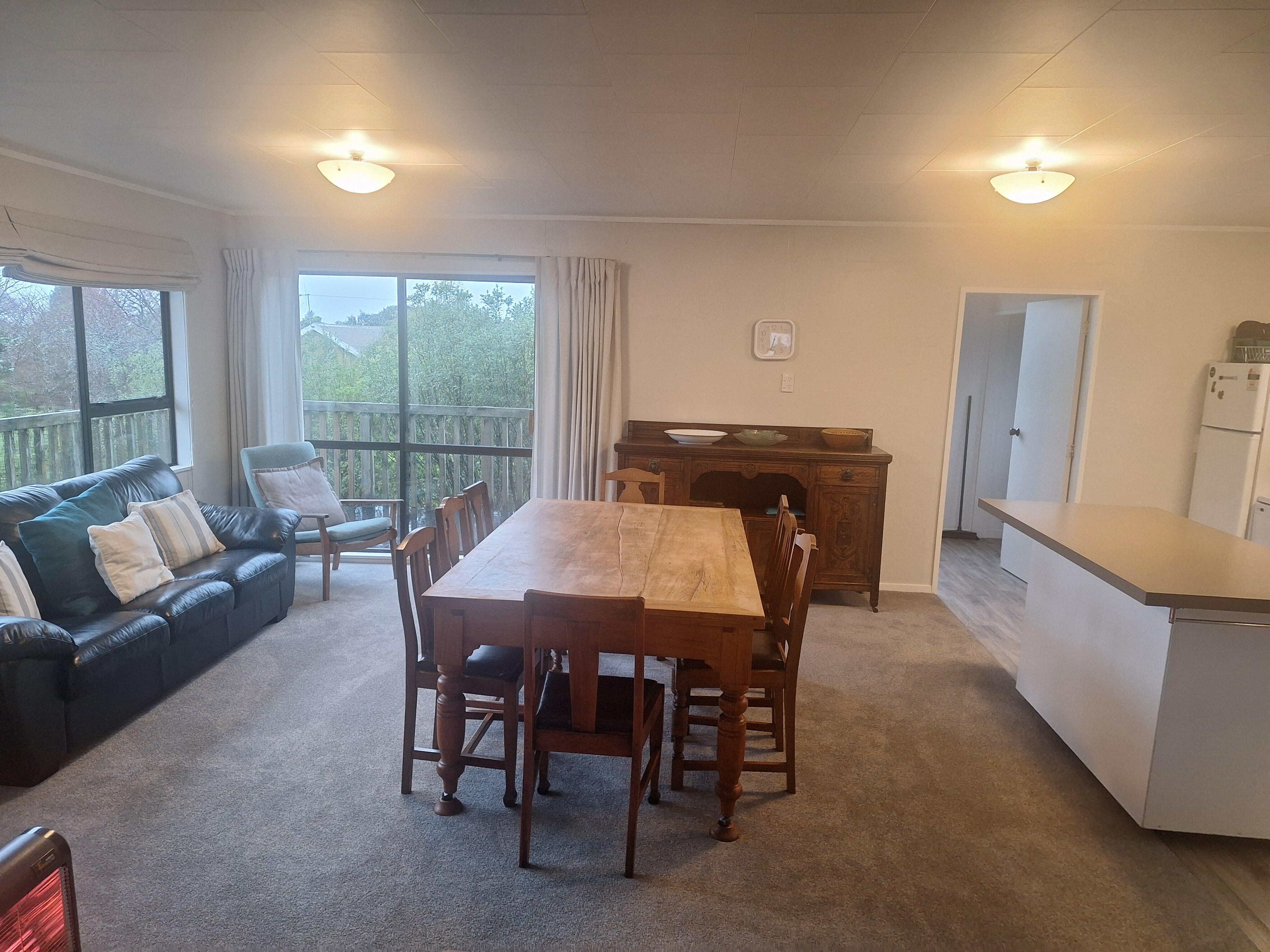 Our bach is a comfortable, sunny, 2 storey home with a sleepout. Upstairs it has a large open plan living space with a log burner, a dining table that can seat up to 10 and a separate toilet and utility room. There is also a large deck with a BBQ, outdoor furniture. Downstairs are three bedrooms, a bathroom and laundry.