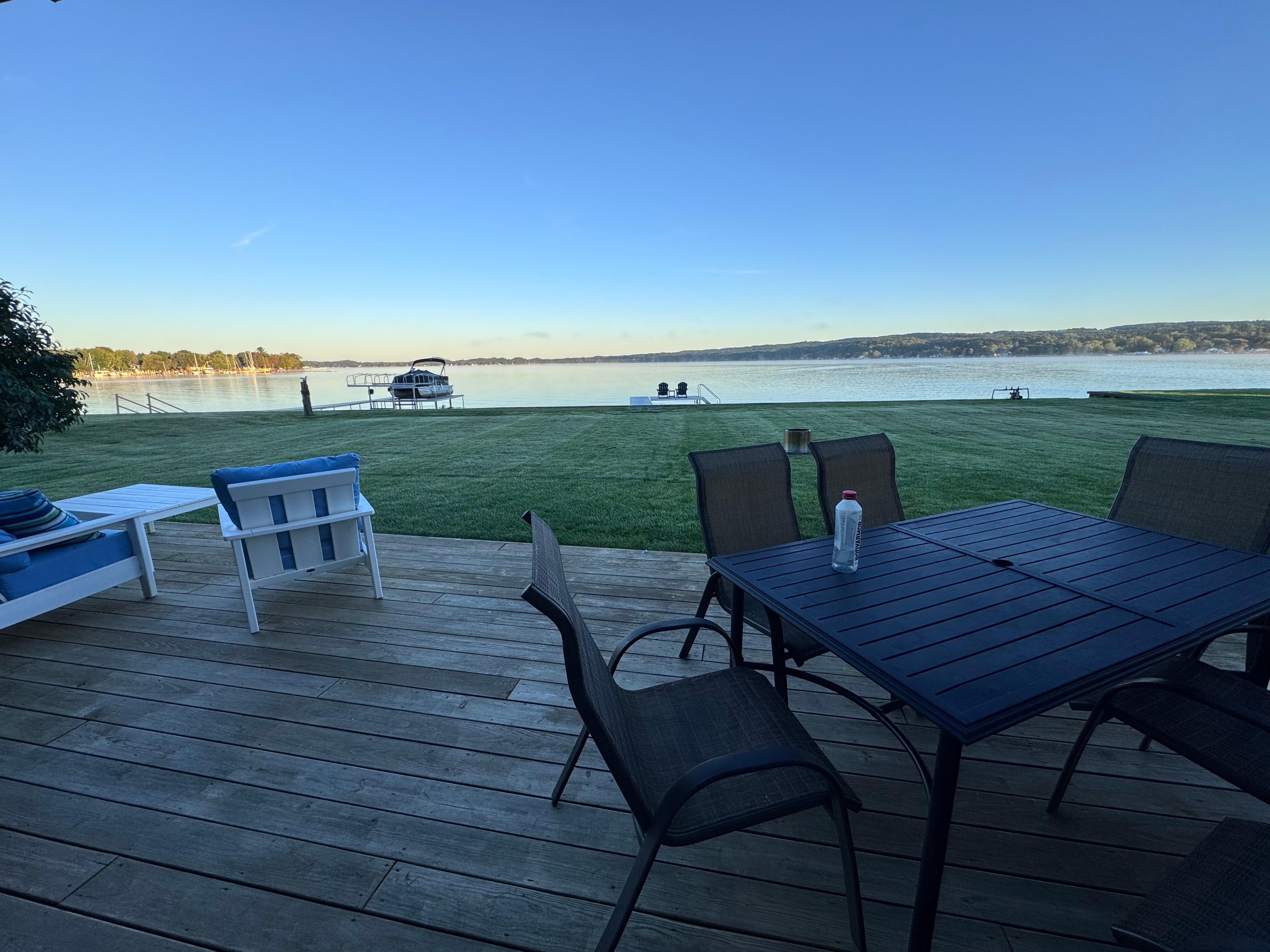 Completely renovated lake front home on beautiful Portage Lake with spectacular sunset views! We have spared nothing! Portage Lake has unique channel access to Lake Michigan, and our home is minutes away from the Onekama marina. We have 100' of private lake frontage, and expansive views of the lake. Located on a quiet street, this location is ideal for your family. This cottage has 3 bedrooms and can sleep up to 8. Two bedrooms offer stunning lakefront views with queen beds. The third bedroom is a bunk room with 2 bunk beds, and can sleep 4.