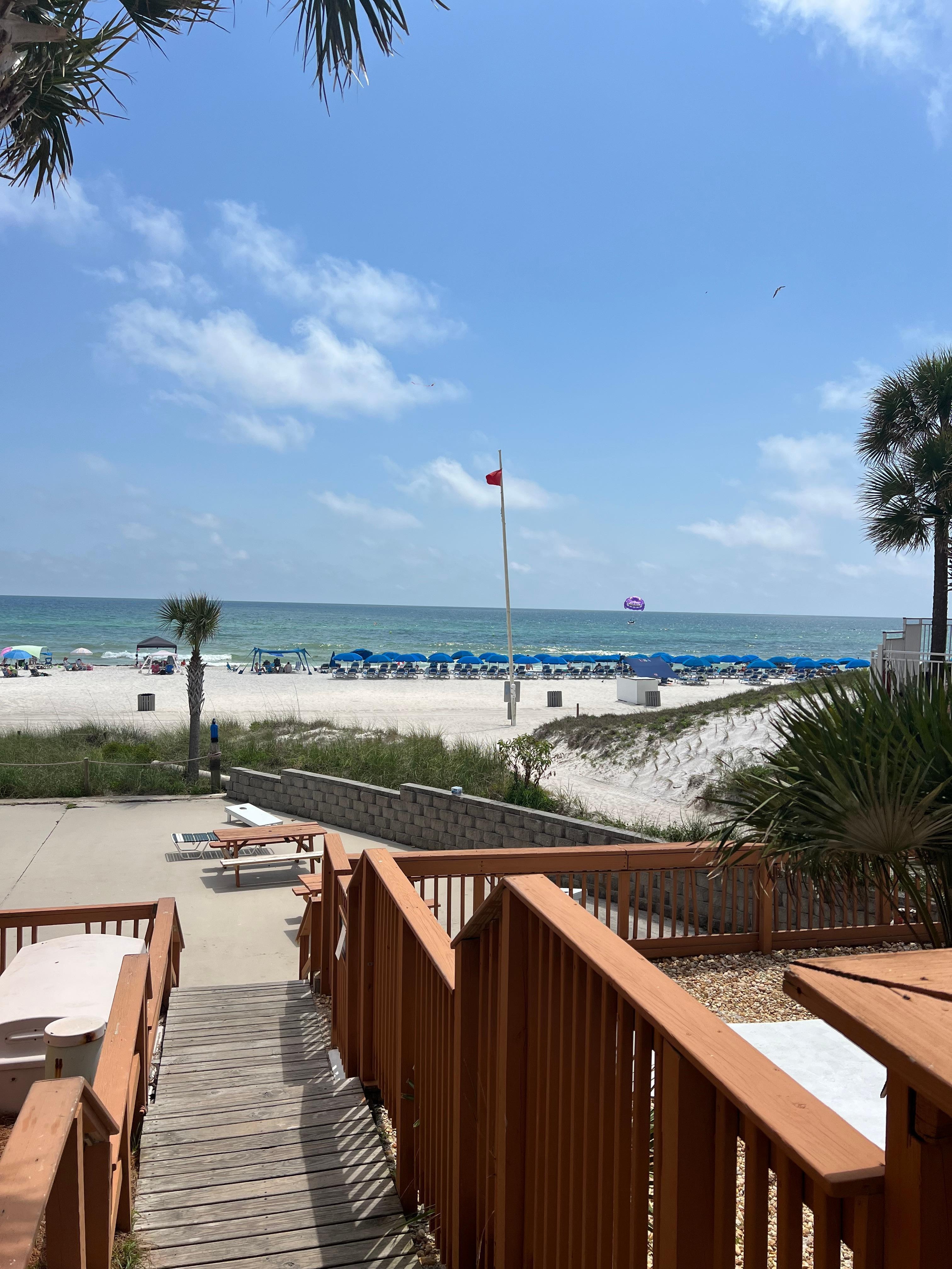Cute updated condo, beachside that allows pets. Nice fenced in pet area. Nice pool. No management on site, but a quick response from the owner, David. Great location close to Pier Park and the dog beach. Walking distance to many restaurants. A little loud at night, due to the Karaoke bar across the street. Would definitely stay here again.