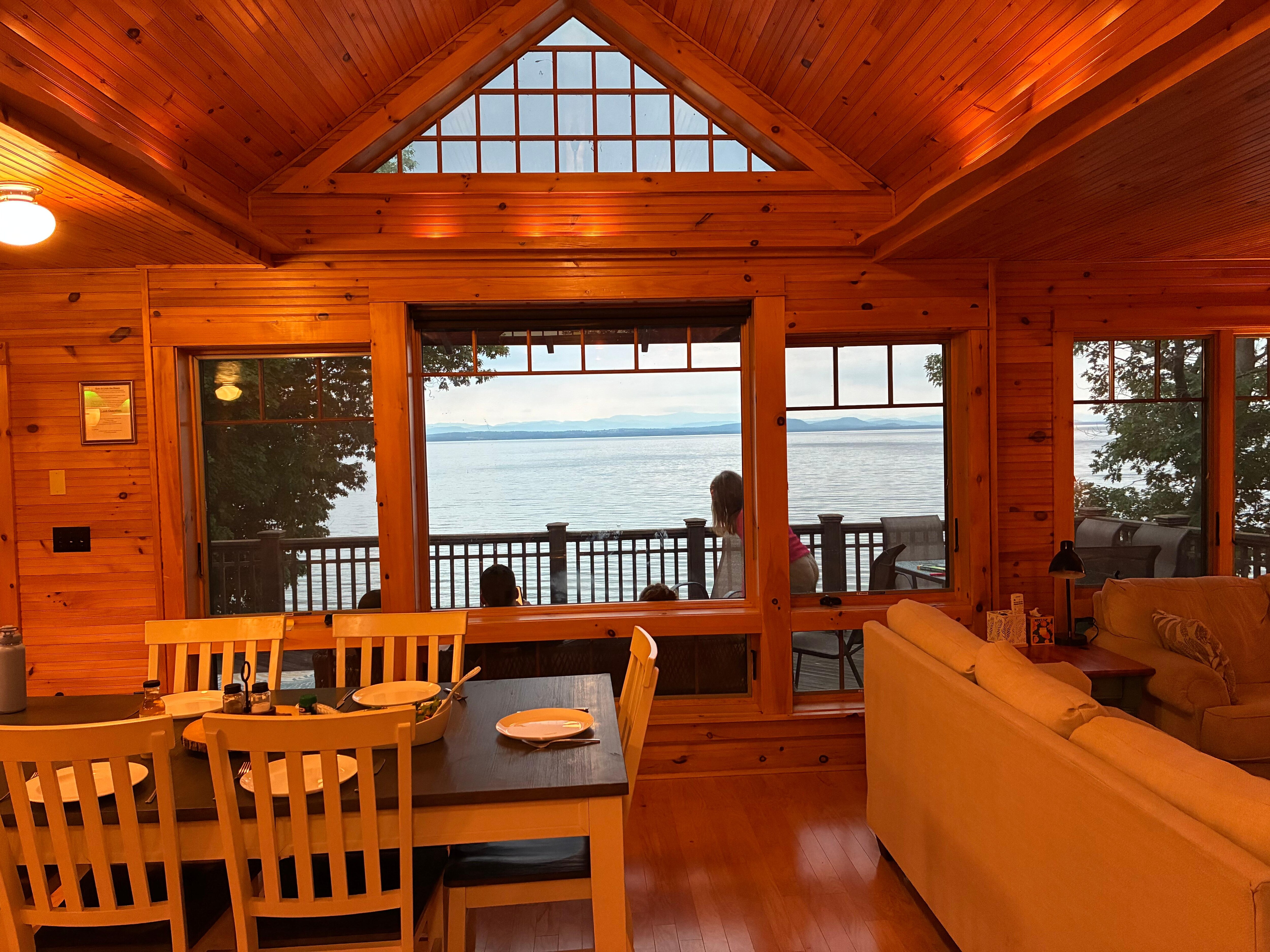 There is enough yard space for kids to run around. During the late summer months, there is a large sandy beach where you can wade out quite a distance. *Please note that the water is higher (sometimes to the stairs) during the early summer months and during wet summers.