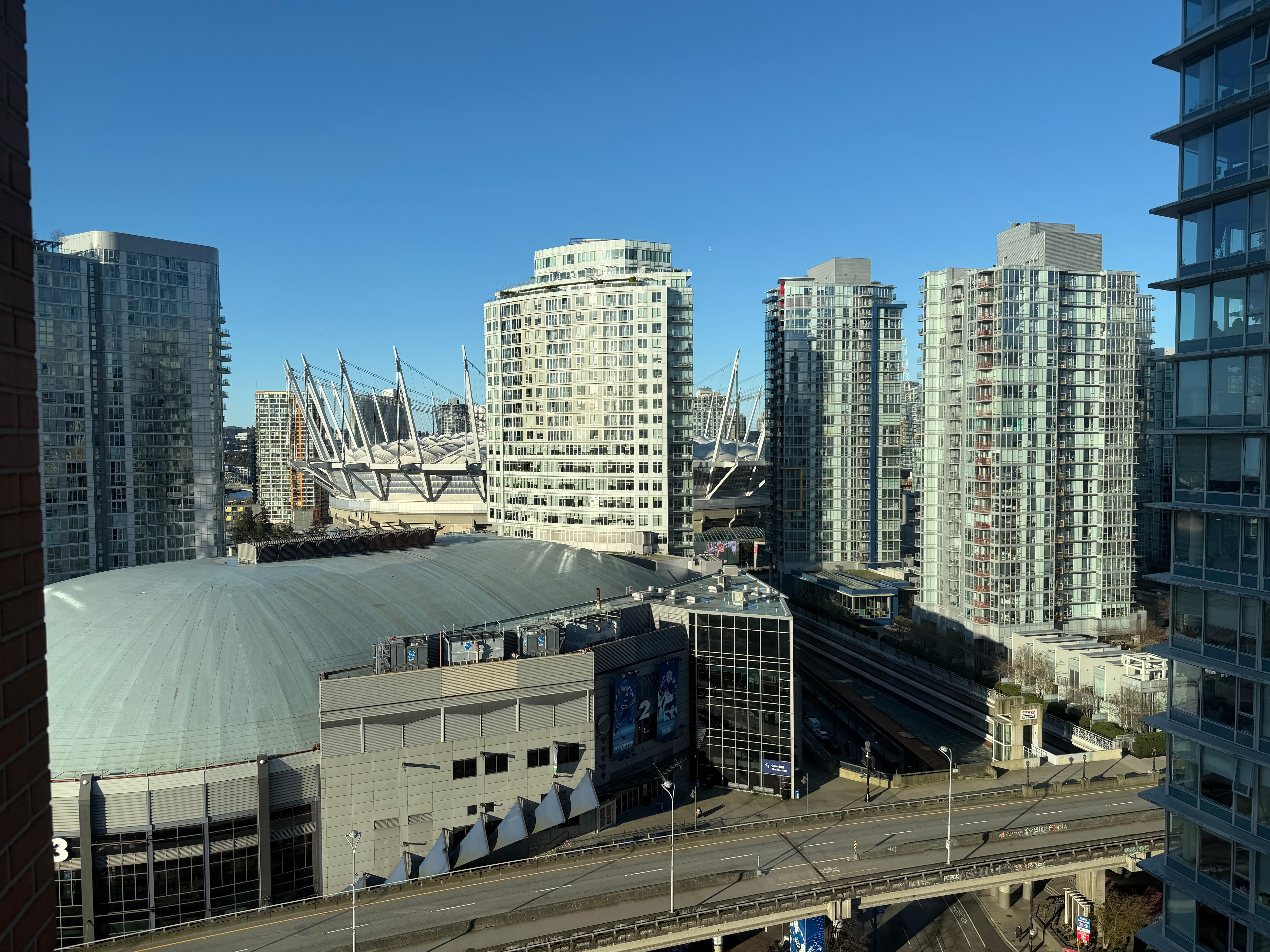 When you sit at the table in the living room and look out from the closet window, the Rogers Arena is close at hand, where holds events like hockey games, concerts and shows.