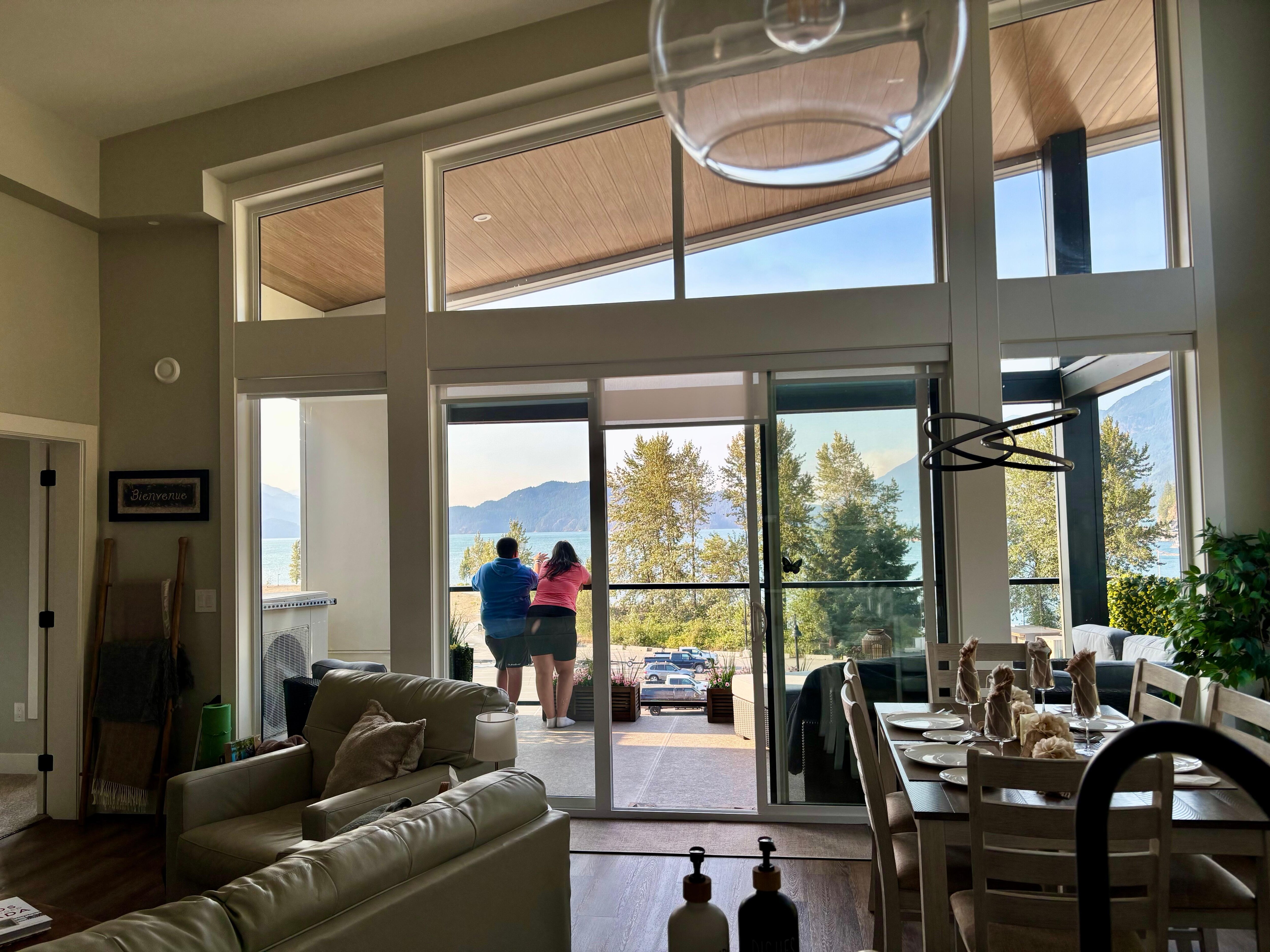 The second you open the front door your eyes will be drawn to the views. The high vaulted ceilings and panoramic window frames make you feel like you're sitting on top of a beautiful British Columbia Parks viewing point.