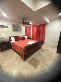 When it's time to rest there are two bedrooms and two bathrooms on the ground floor with one king bed and one with a queen bed. Each bedroom has air conditioning and ceiling fans and the queen bedroom also has a TV and private patio with sun loungers. On the second floor there are three additional bedrooms and two bathrooms all with king beds. The second floor has its own living room/game room with couches, a pool table, piano and television. There is a 16 foot patio door that opens all the way up so you can enjoy the outdoor patio and sun loungers with absolutely beautiful views of the ocean and a different sunset every evening. There are plenty of places to read and relax with access to two additional patios with amazing ocean views of the south coast.