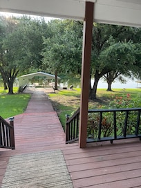 - Covered dock, bench swing