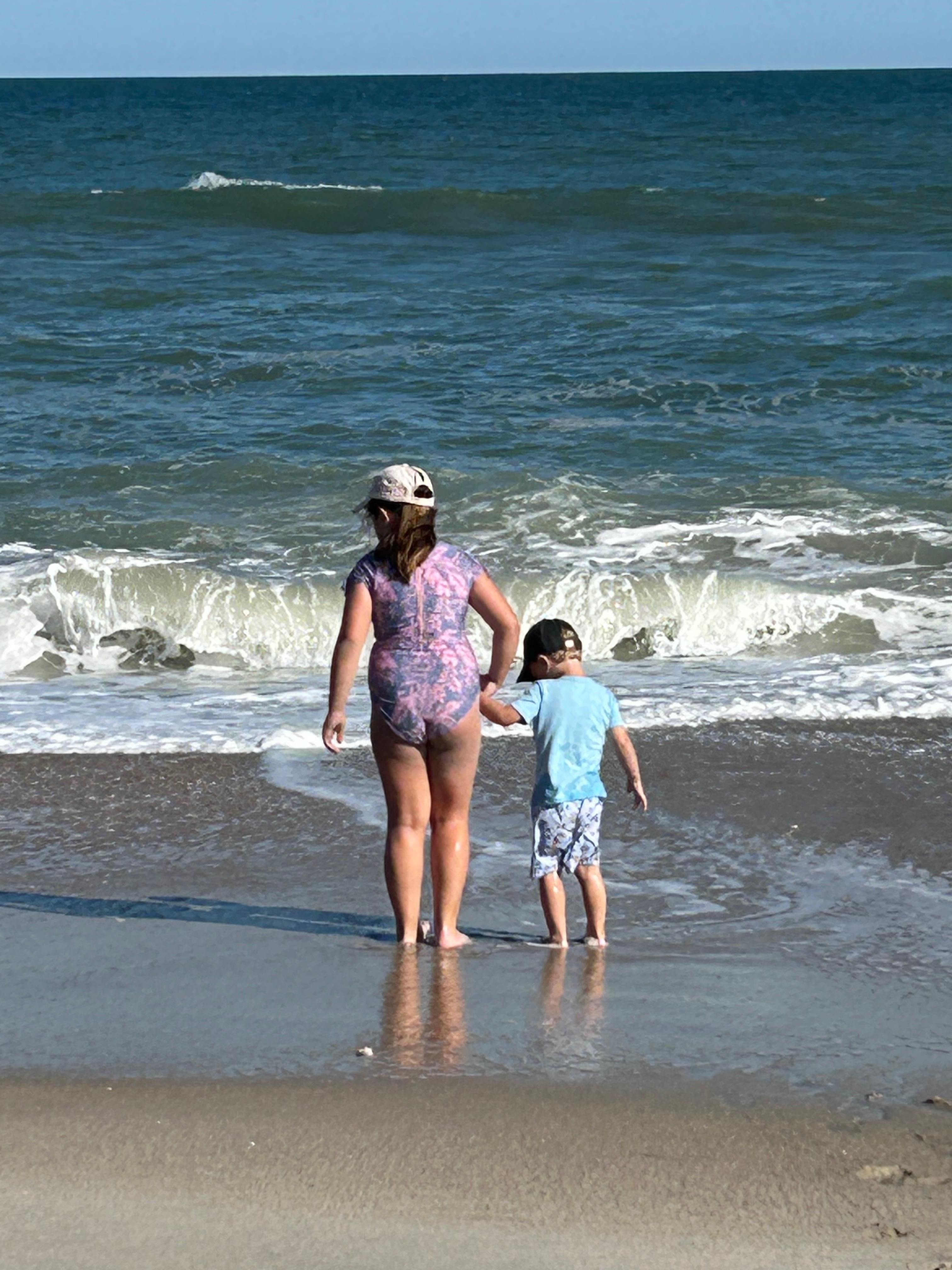 - Beach towels/chairs/umbrella, sand toys, bodyboard