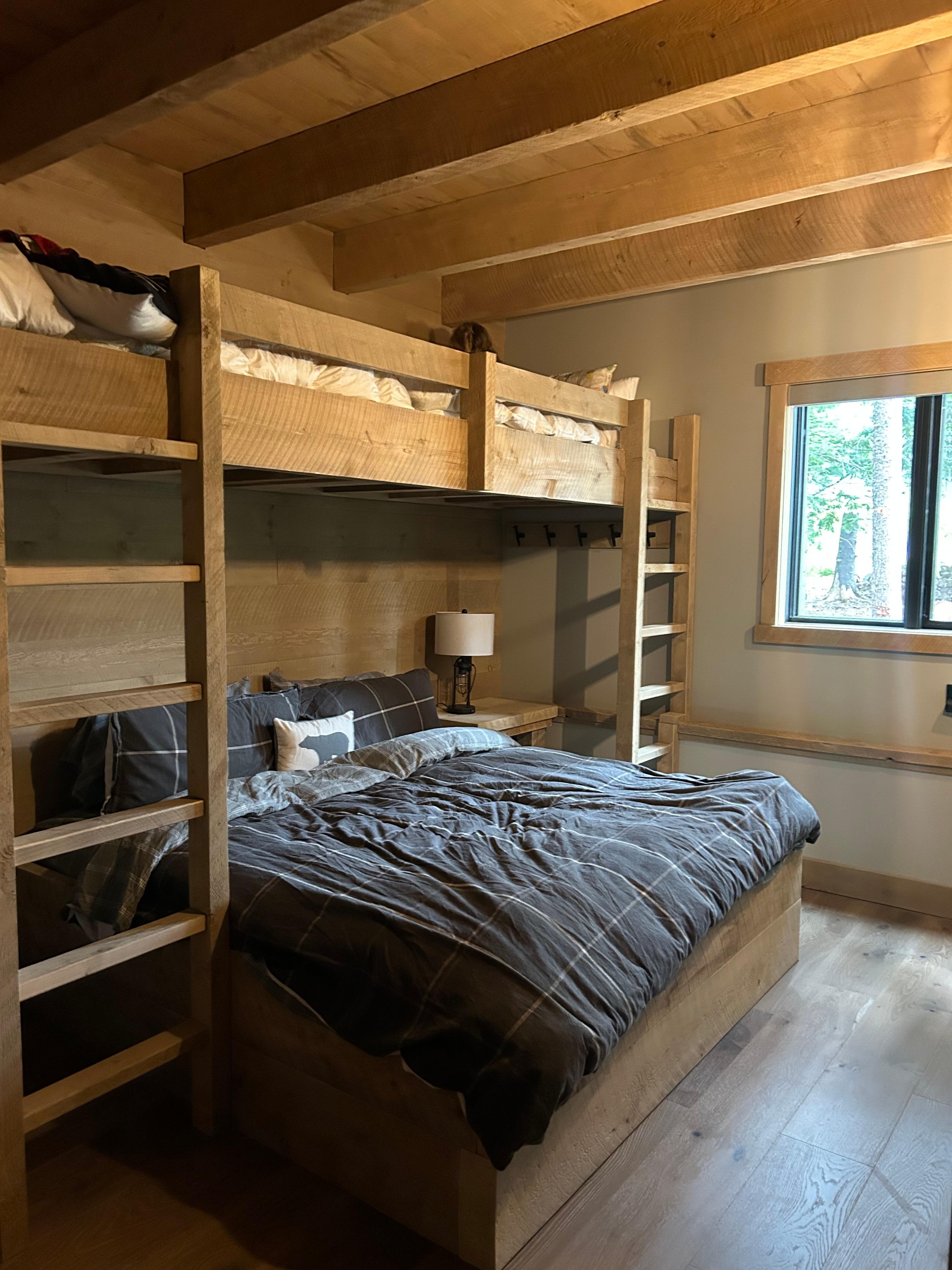 2 King bedrooms, plus a 3rd king in the 3rd floor loft area are located upstairs while a pair of bunk rooms are on the main level with a total of 4 twins, 2 queens and 1 king. This ensures that the house can sleep up to 16 all on luxurious Simmons Napa Black mattresses.