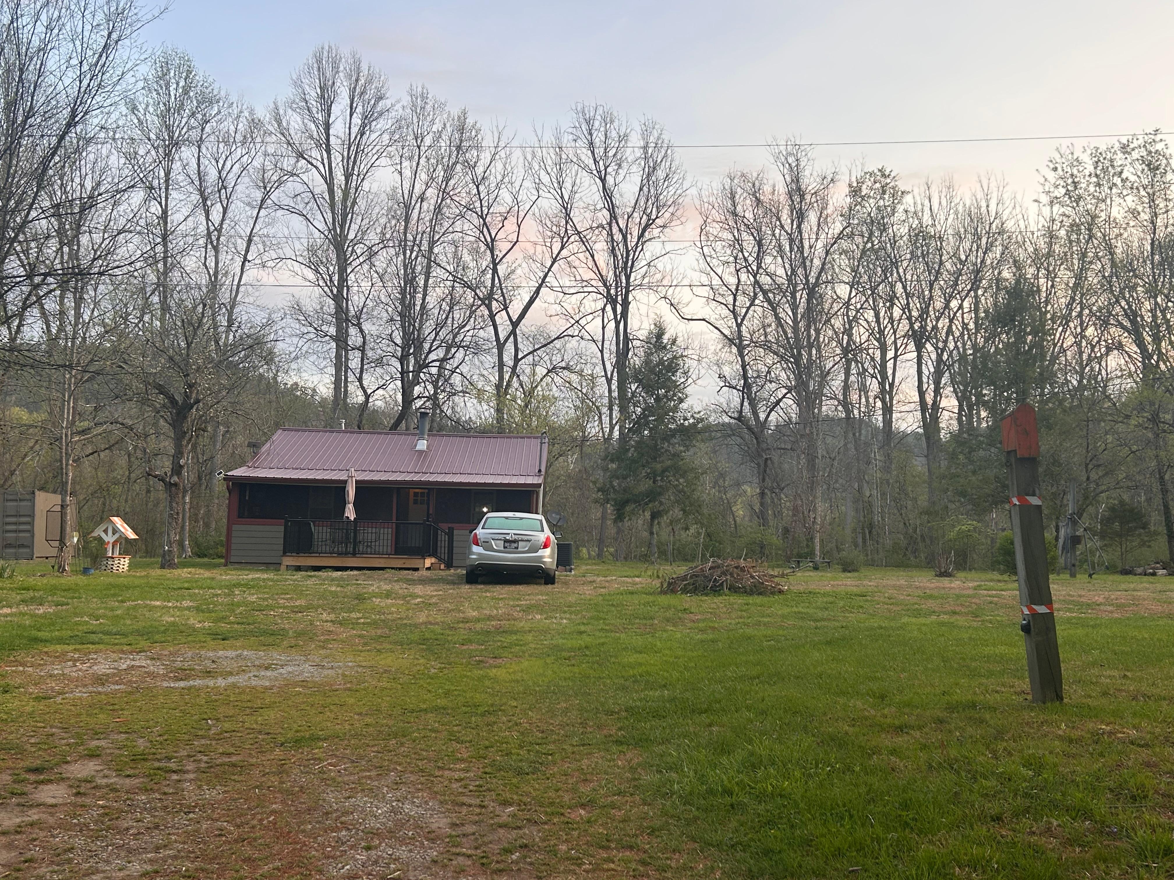 - This single-story cabin requires exterior steps to enter