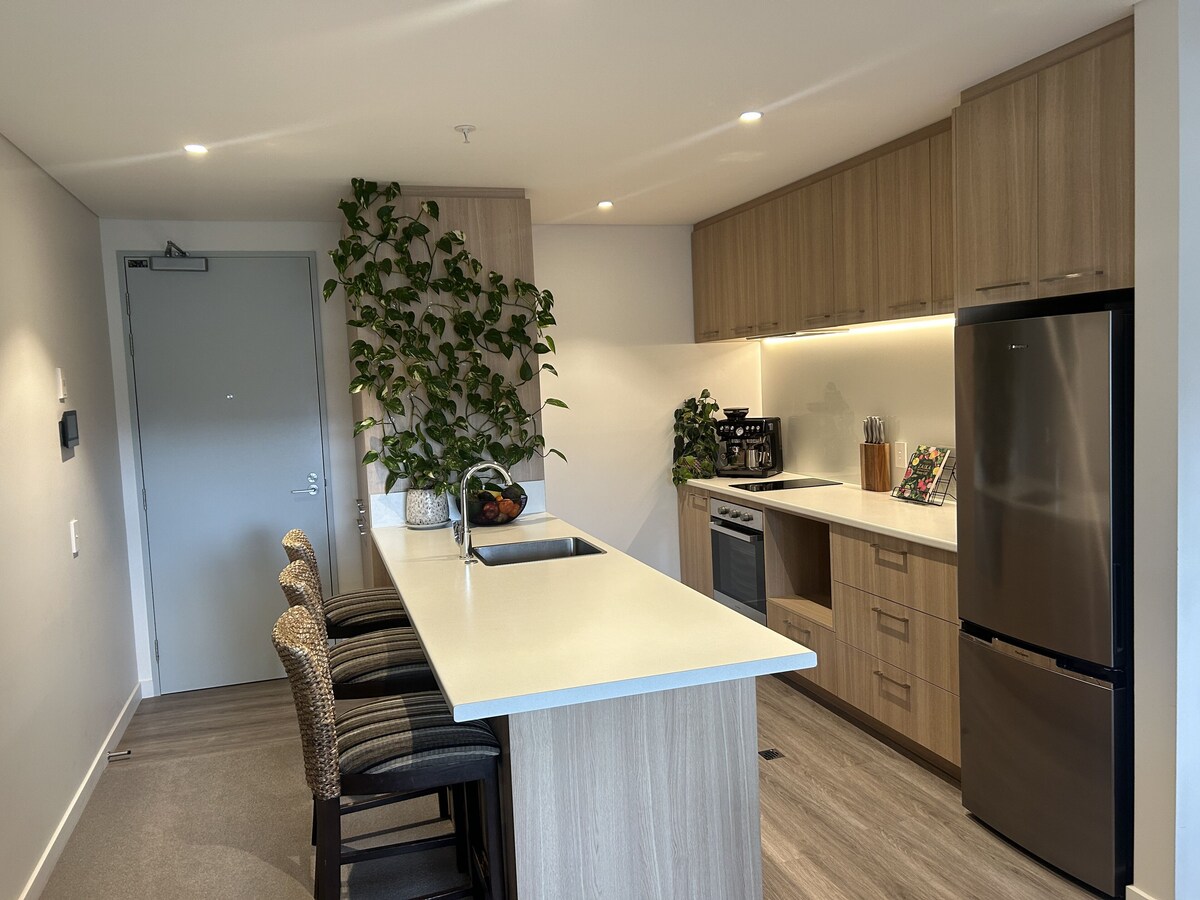 Modern, private apartment (w/ balcony) featuring incredible views of The Remarkables and designated carpark.