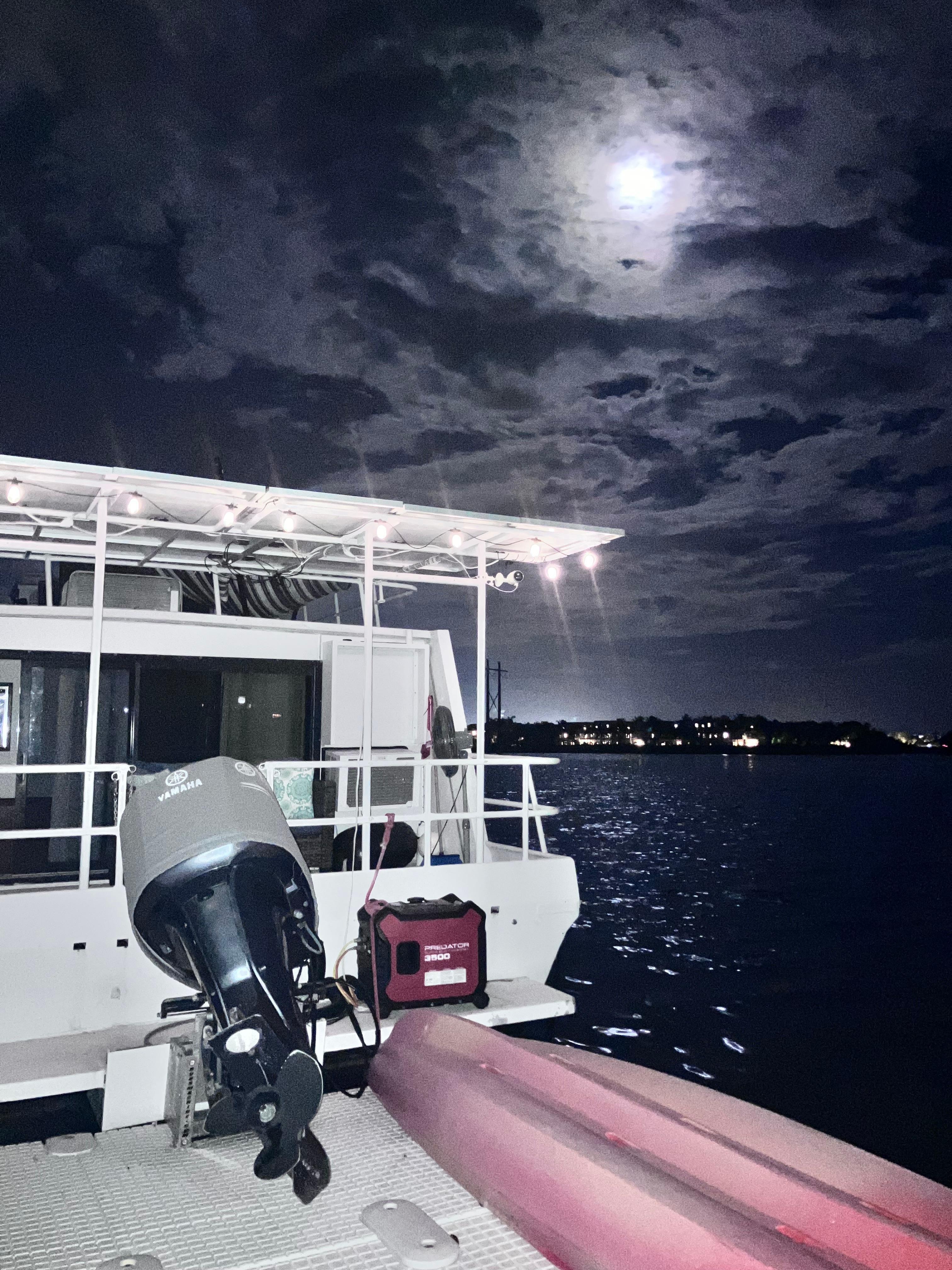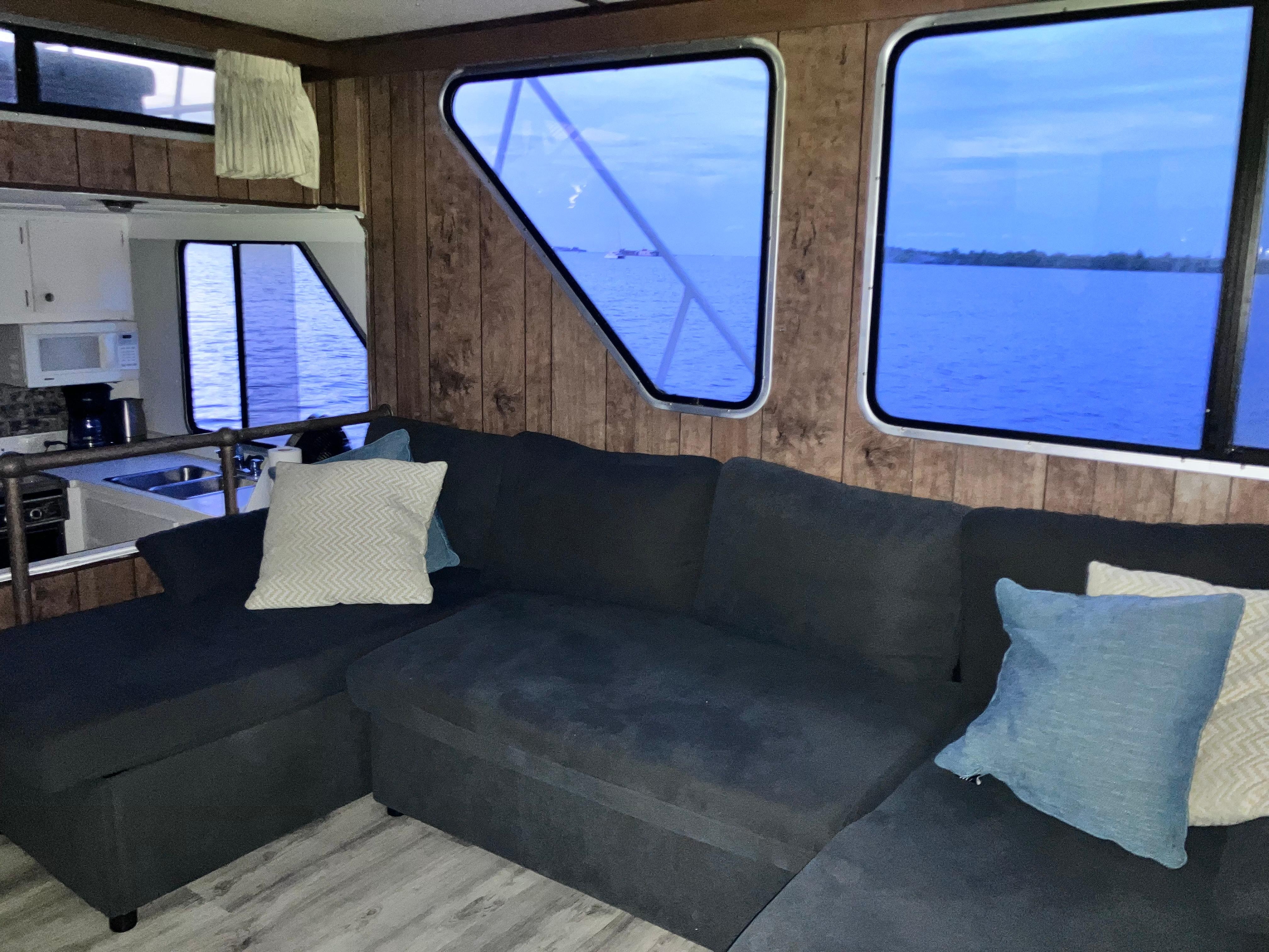 Boating experience is required as you will be out on the water and get yourself to and from the boat. It is important that you are aware that this is a houseboat. Your electric is coming to the form of solar or generator power. There is a water heater and For size shower. There’s also a fridge and microwave. The bed is a sleep number which is adjustable on either side of the bed. There is AC in the bedroom. However the rest of the boat is called with the Ocean breeze in box fans. The top deck is beautiful place to watch sunsets or gaze at the stars. An extra cleaning fee will be charged if dishes are left in the sink or the house is left in very unclean conditions.