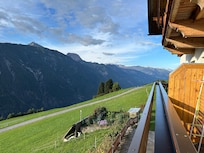 We stayed here as part of a family summer holiday (2 parents and our teenage son) and this was the first time we'd visited Austria (driving from the UK).  The apartment is superb - clean, tastefully presented, comfortable, well equipped and with great attention to detail.  The owners/hosts were charming and friendly, but also respected our privacy.  And the location is incredible, with spectacular views from the balcony (and every window has a view too).  Flowers on the table and on the balcony provide a nice finishing touch, and I can't think of anyting we'd have changed.  The road up to the property is (as you might imagine) quite steep and twisty, but is well maintained and not too scary despite taking you fairly high up above the valley.  We only stayed for 5 nights (would love to return sometime), and found there's plenty to explore in the area, from local walks, castles, some very pretty villages and towns, mountain roads, cable cars etc.  However some of our favourite memories of the holiday were just from sitting on the balcony enjoying the mountain scenery whilst relaxiing with a glass of wine.  I don't usually give such glowing reviews, but I really couldn't fault our stay.  Highly recommended to anyone who enjoys wonderful scenery and great accommodation.