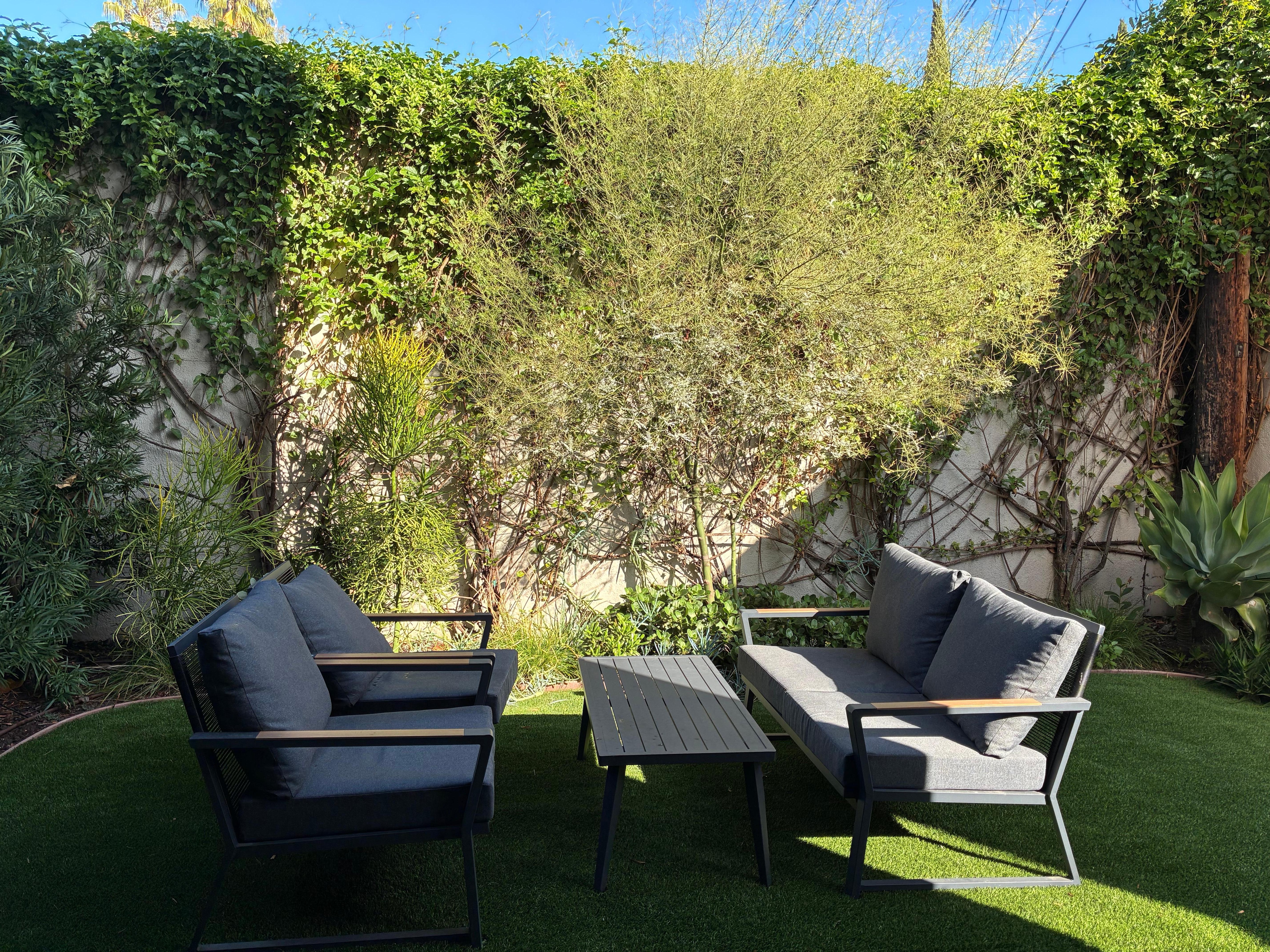 New, modern 1 bedroom apartment with space for 4, located within walking distance of downtown Larchmont Village, major studios and restaurants. This unit is on the 1st floor of a home with a separate entrance and completely locked off from the rest of the owners' house. Completely private, including your own back yard! The unit contains a kitchenette, fridge, 2-burner hot plate, convection microwave, sink, and coffee maker. There is a king in the main room and a full Murphy bed in a private separate space in the den area. There is no designated parking space, but there is usually ample street parking.