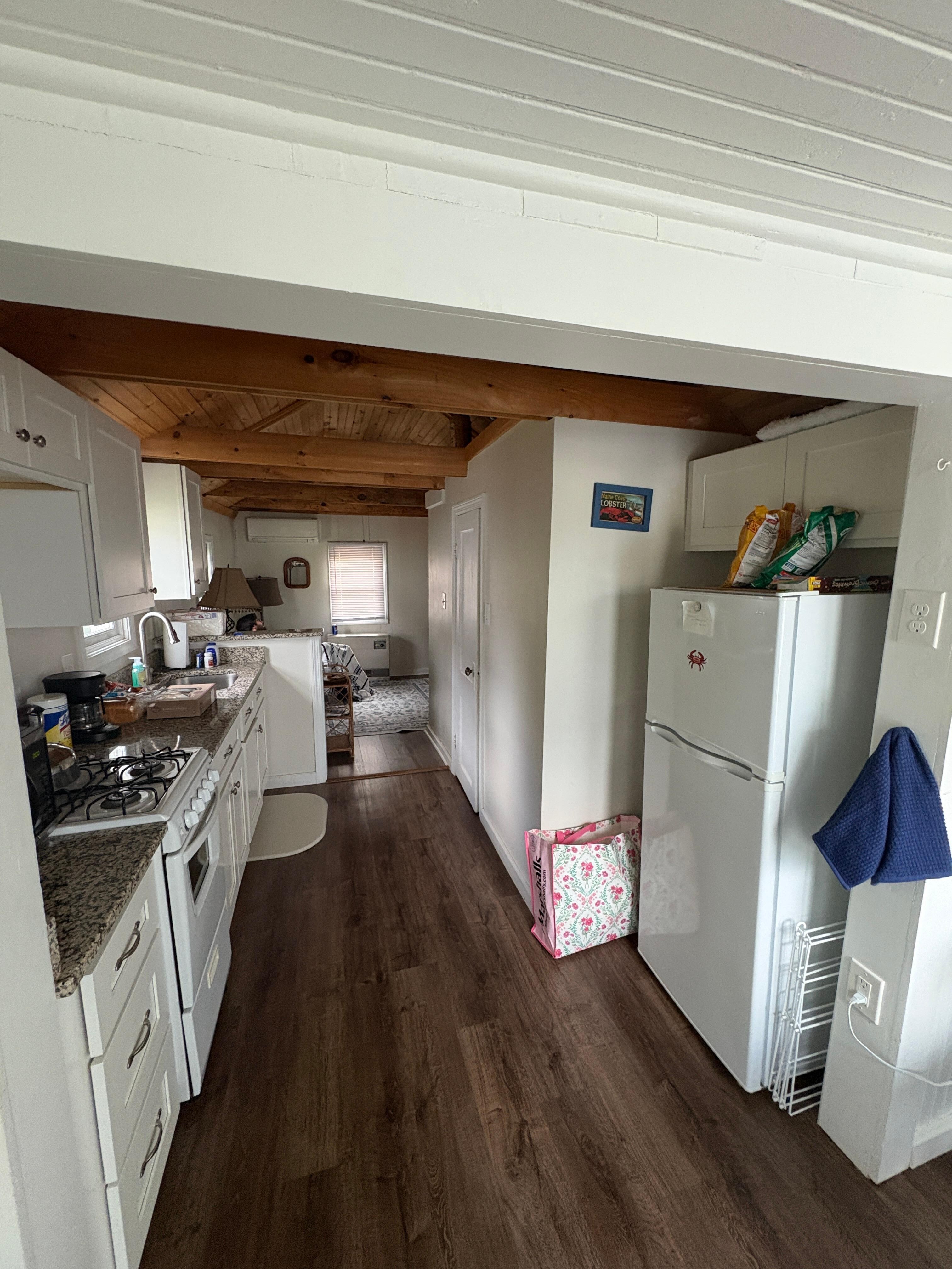 My husband and I stayed for about a week at this property and loved it! It was just enough room for us two, and we loved having the option to cook meals in the kitchen if we didn’t feel like going out. The house is a short walk to a nice quiet beach, and is super close to all of the fun of Old Orchard, Portland, and other nice places to walk around at. I’d say the only knock is that the bathroom is super tiny, and may be hard to navigate if you are a larger/curvier person, but that personally wouldn’t stop us from staying here again.
