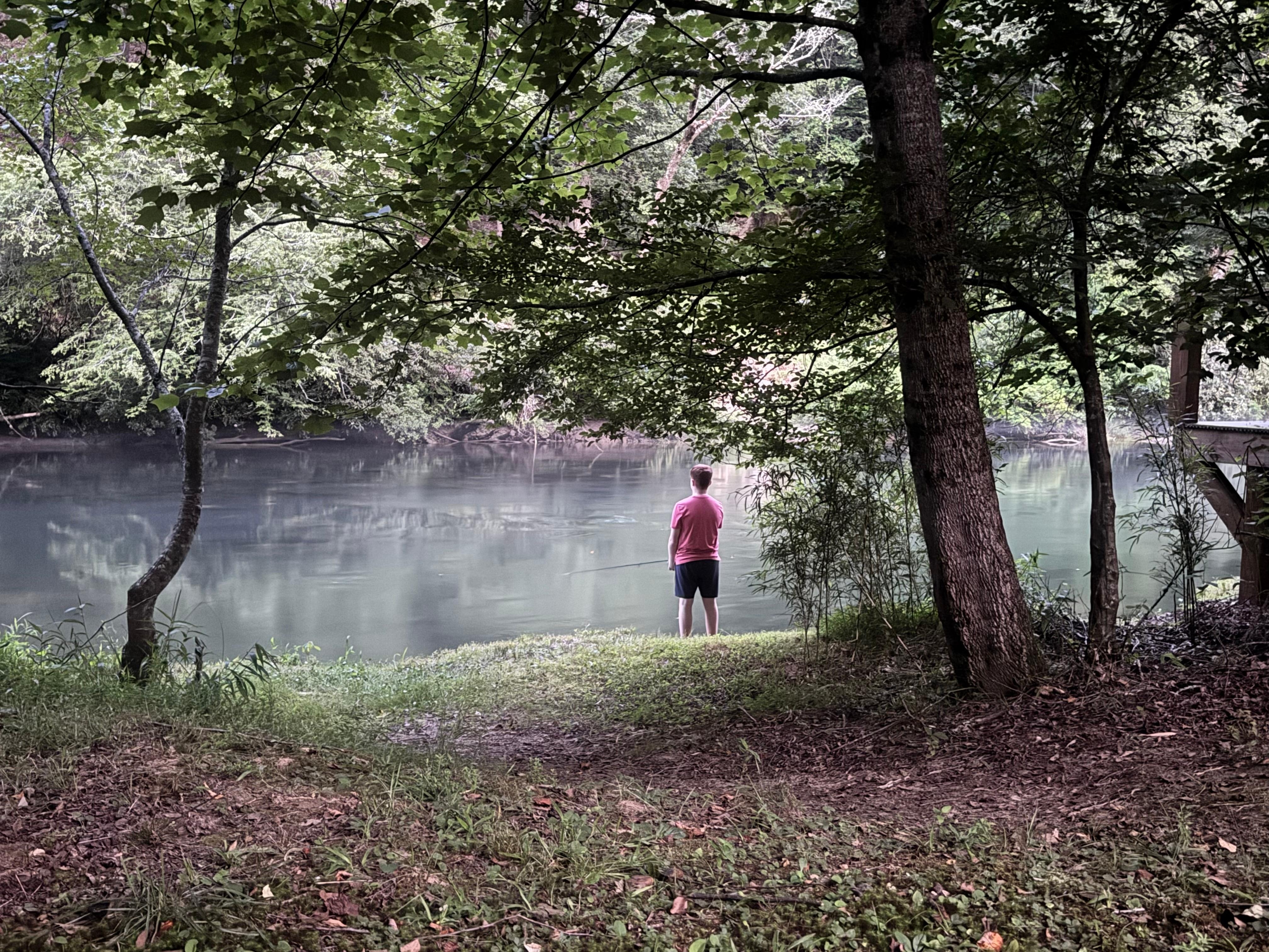 The home has a large screened-in porch facing the river with lounge chairs and an dining table. Amenities in the lawn / along the river bank include a patio with Weber gas grill, a large picnic table, horseshoe pits, 2-person swing, and a fire pit with seating for 6.