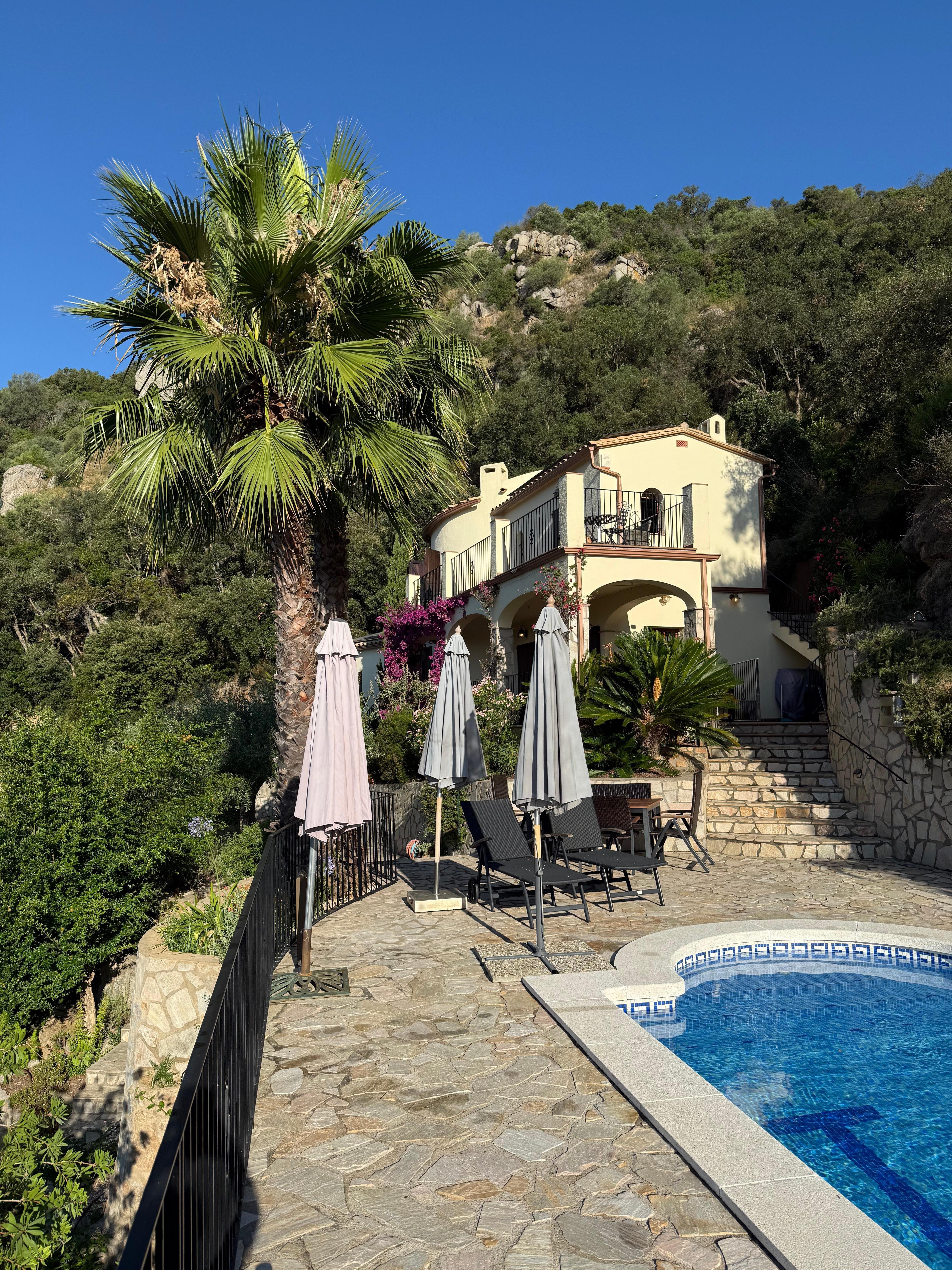 This spacious 6-person family house is located on a sunny hill in a quiet, wooded area in the urbanization Vizcondado de Cabanyes. It has a fantastic view day and night on the sea at Palamos and the surrounding cork oak forests. (Gavarres Mountains)