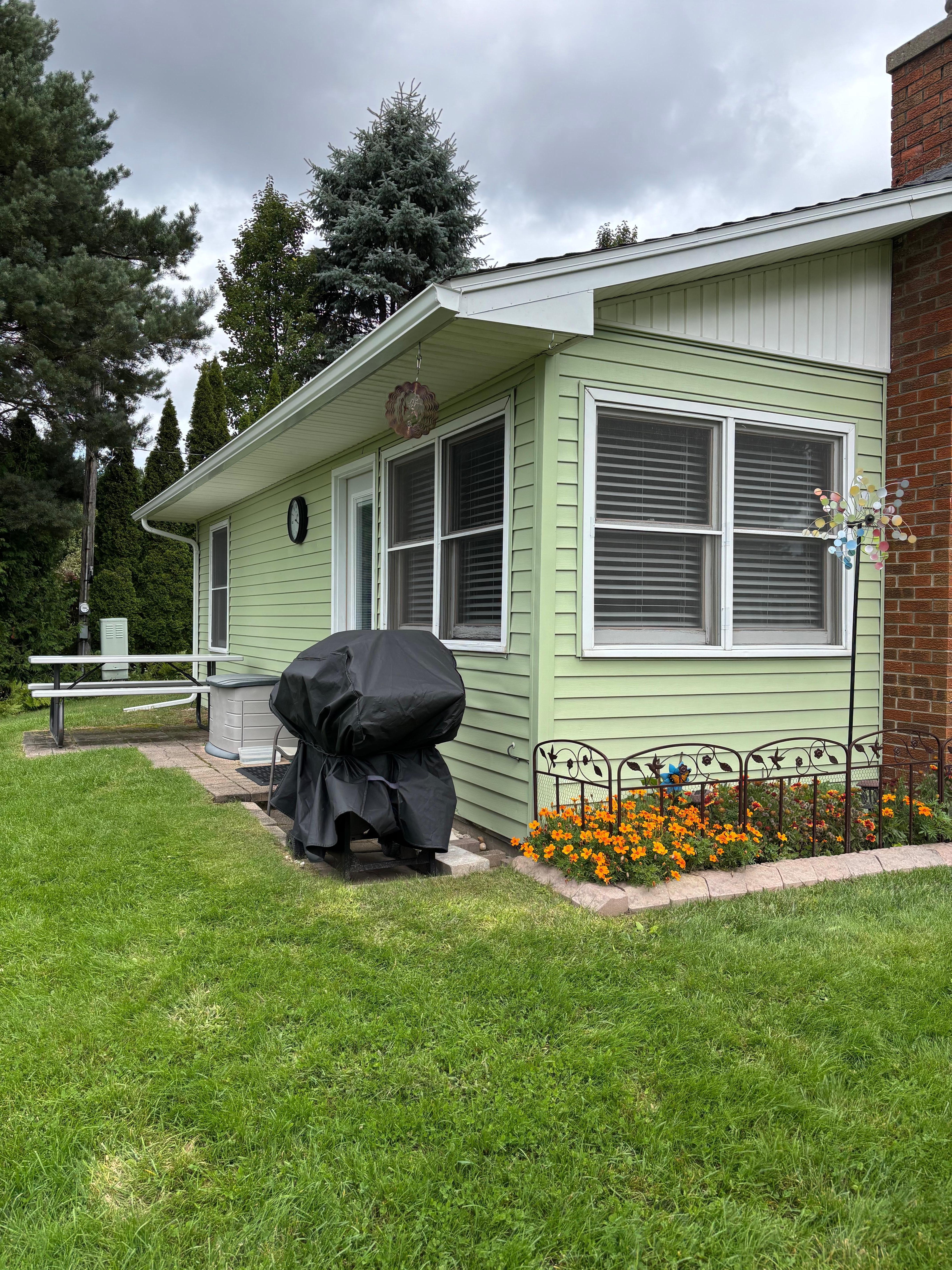 Cottage includes two bedrooms, one with a queen size bed and the other has two twin sized beds. It has one bathroom, a full kitchen, A/C, TV, WIFI and DVD player, gas grill and three kayaks.