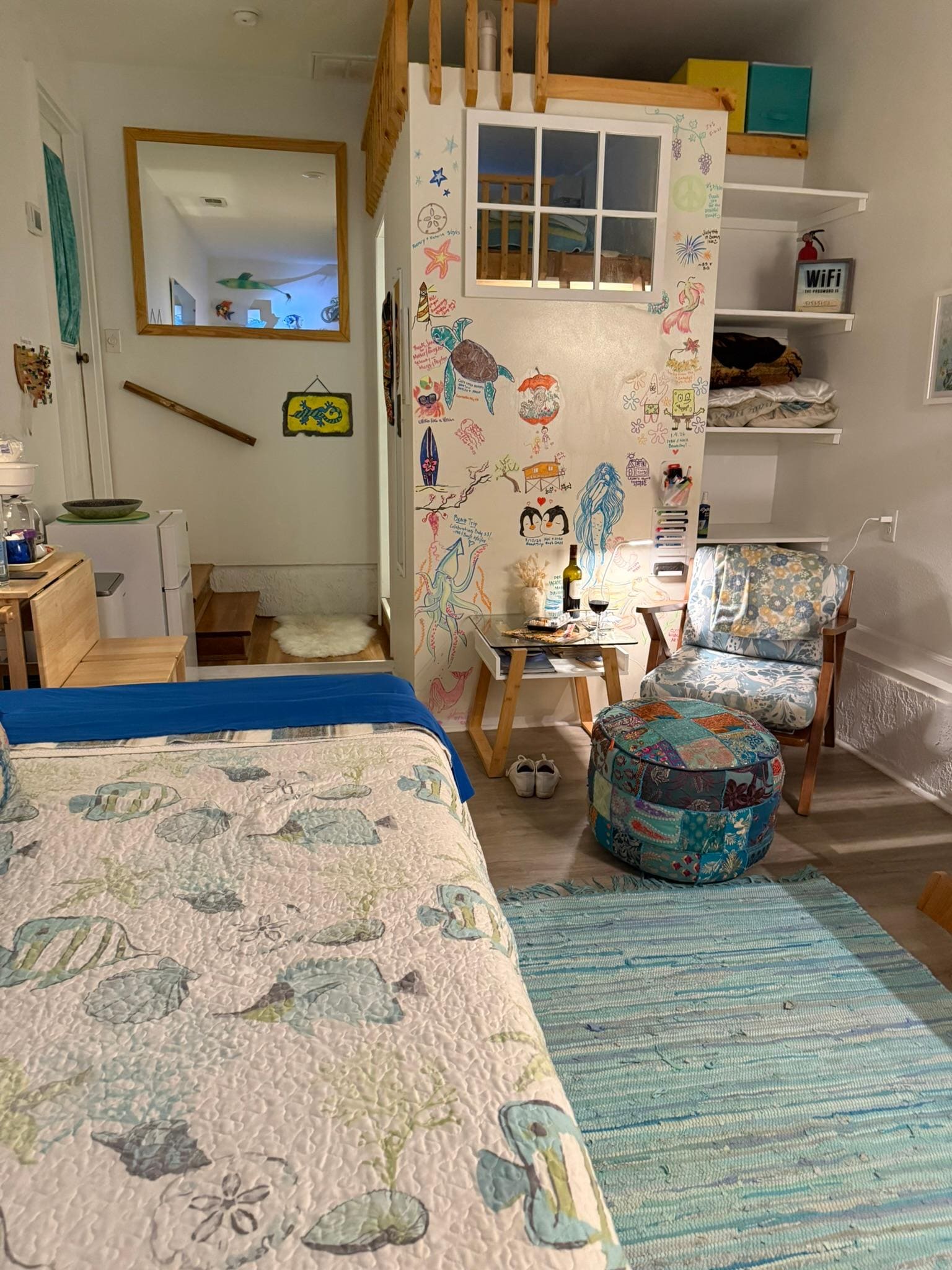 What a great little spot to unwind from traveling -so peaceful and relaxing! Artsy with nautical vibes with comfy daybed or stay in loft up the ladder.Close to Sunset and Ocean Isle Beaches. Host thought of all the amenities as well. I hope to go back when in area again
