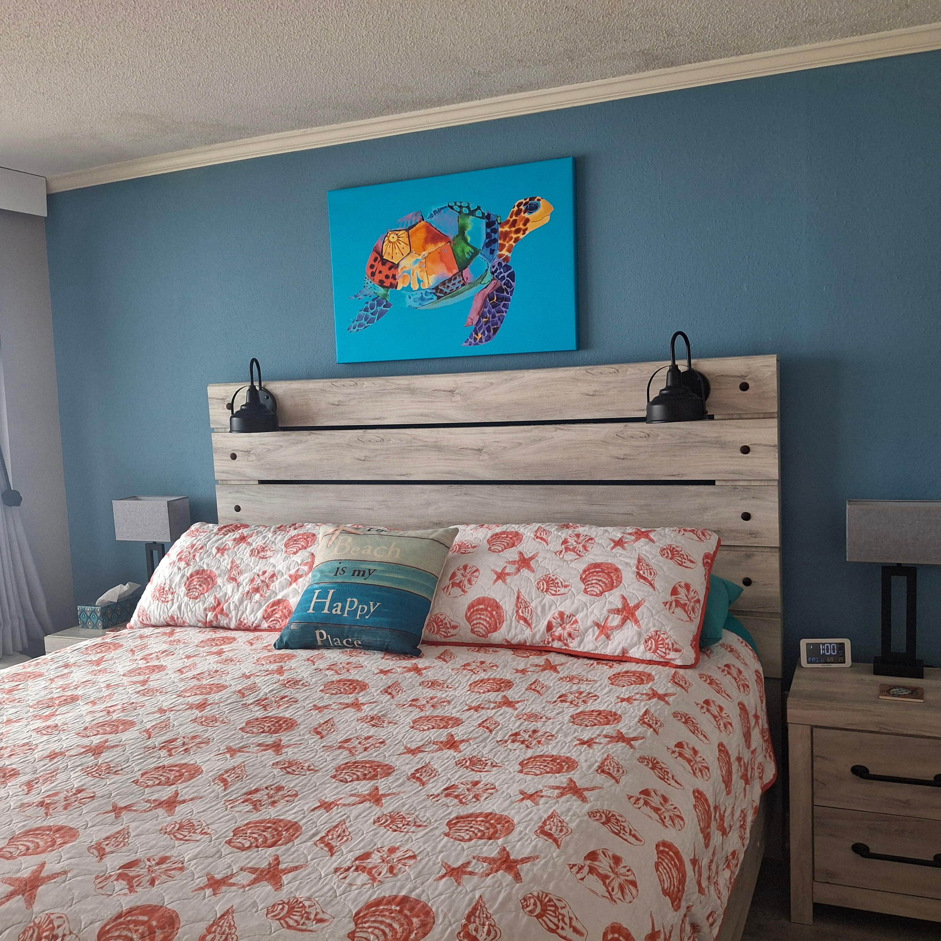 Welcome to OceanAura, a true one bedroom/one bath oceanfront unit with amazing views. Keyless entry with no contact check in or check out. Key code changed after each stay. Luxury vinyl plank flooring, granite counter tops, newer furnishings, 55 inch Samsung QLED SmartTV, bathroom remodeled with new flooring, paint, vanity, light, and gorgeous tiled shower with tub. The bedroom has a king size bed with a very comfy plush mattress to enjoy the views. The nightstands have lamps with USB chargers for your phones and electronics. There is also a tv as well as access to the balcony.