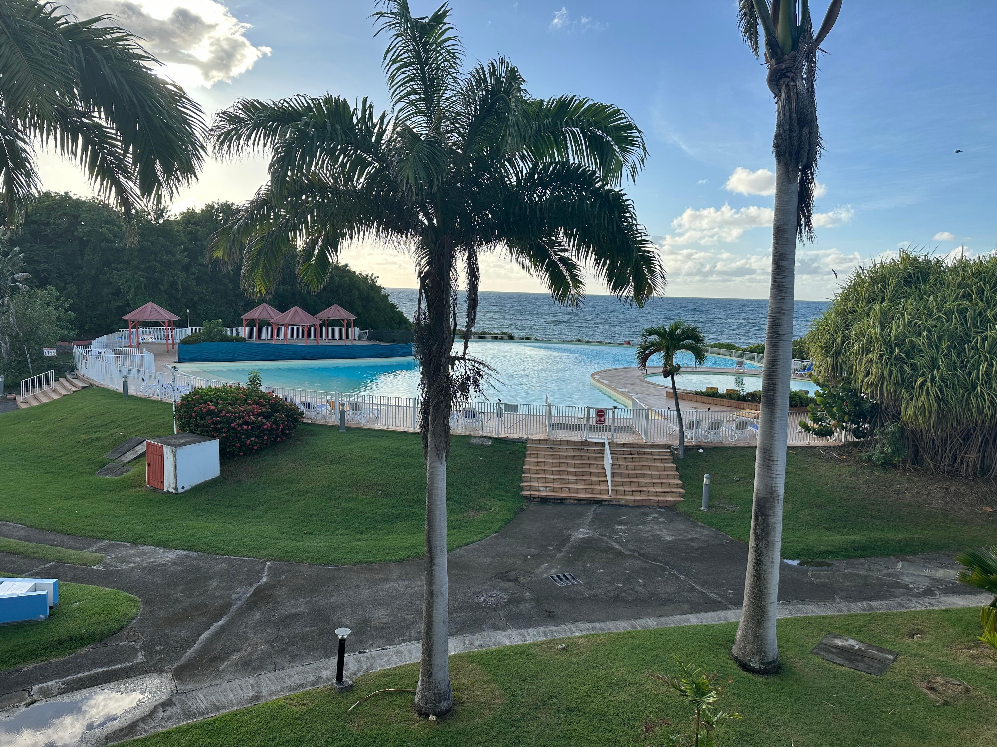 Parfaitement situé dans une résidence arborée avec une immense piscine vue mer