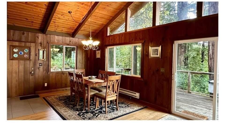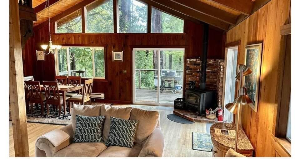 The house sits in a Redwood forest with a partial blue water ocean view. You can hear the waves and sea lions from the house. The setting is very private, calm and romantic. The deck and garden are perfect for hottubbing, relaxing, sunbathing, enjoying meals or watching the local wildlife. You will most likely meet the local bevy of quail, watch the hummingbirds dart around the garden, hear the ravens in the trees, see the chipmunks and squirrels and maybe get a glimpse of a deer.