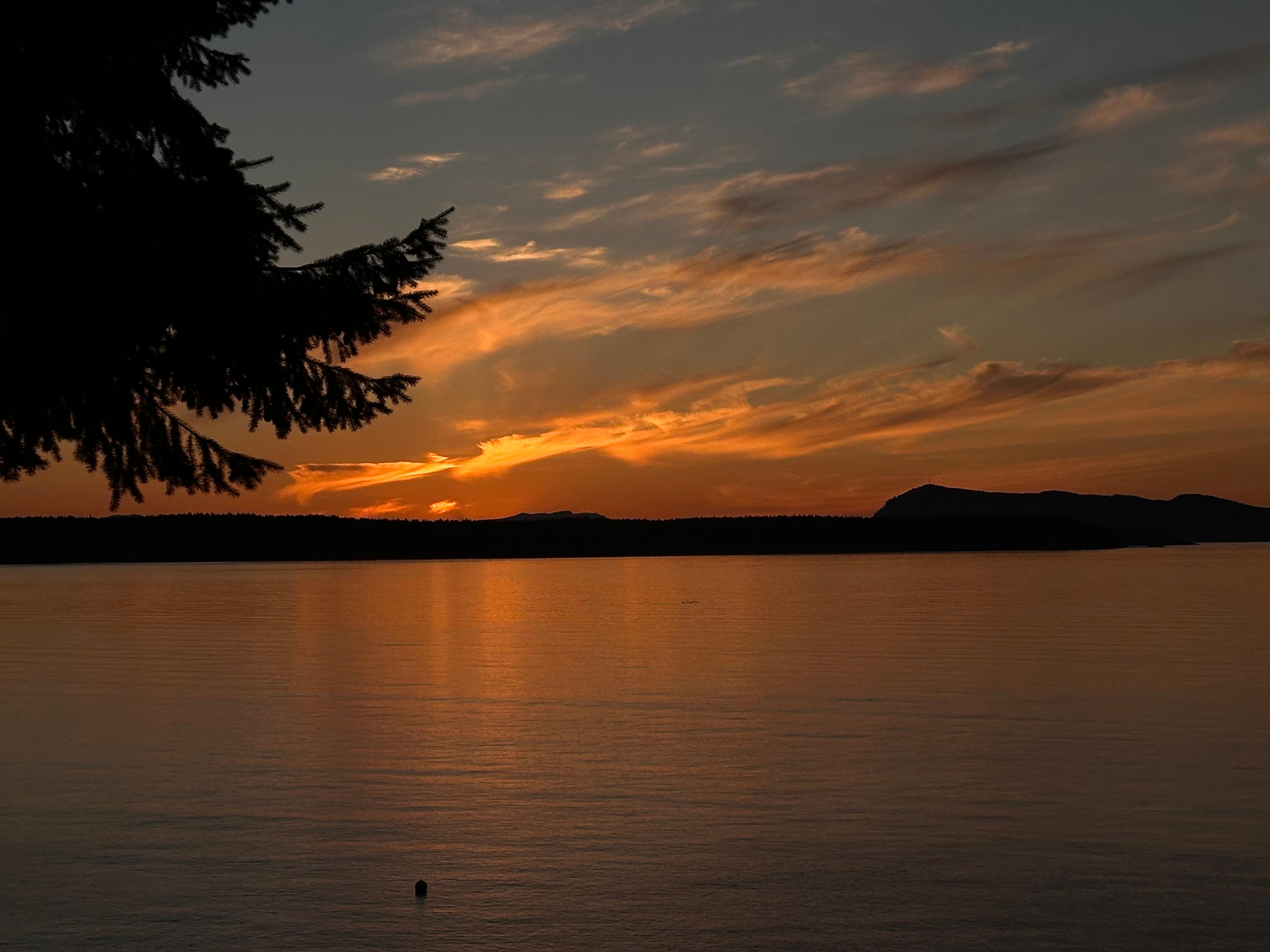 The quality of light at SunBright Le Reve is very special. Sunlight pours into this home throughout the entire day, culminating in a tremendous glistening effect near sunset. Enjoy an evening glass of wine and delight in the golden flickers of light "dancing" around the living room. Bake a pie with apples, pears or plums from one of the mature fruit trees on the property. Then enjoy your homemade dessert in a setting that is private and peaceful. The salt air, shimmering sun and spectacular sunsets surrounded by the majestic Orcas forests makes for a magical setting for your vacation or weekend getaway.