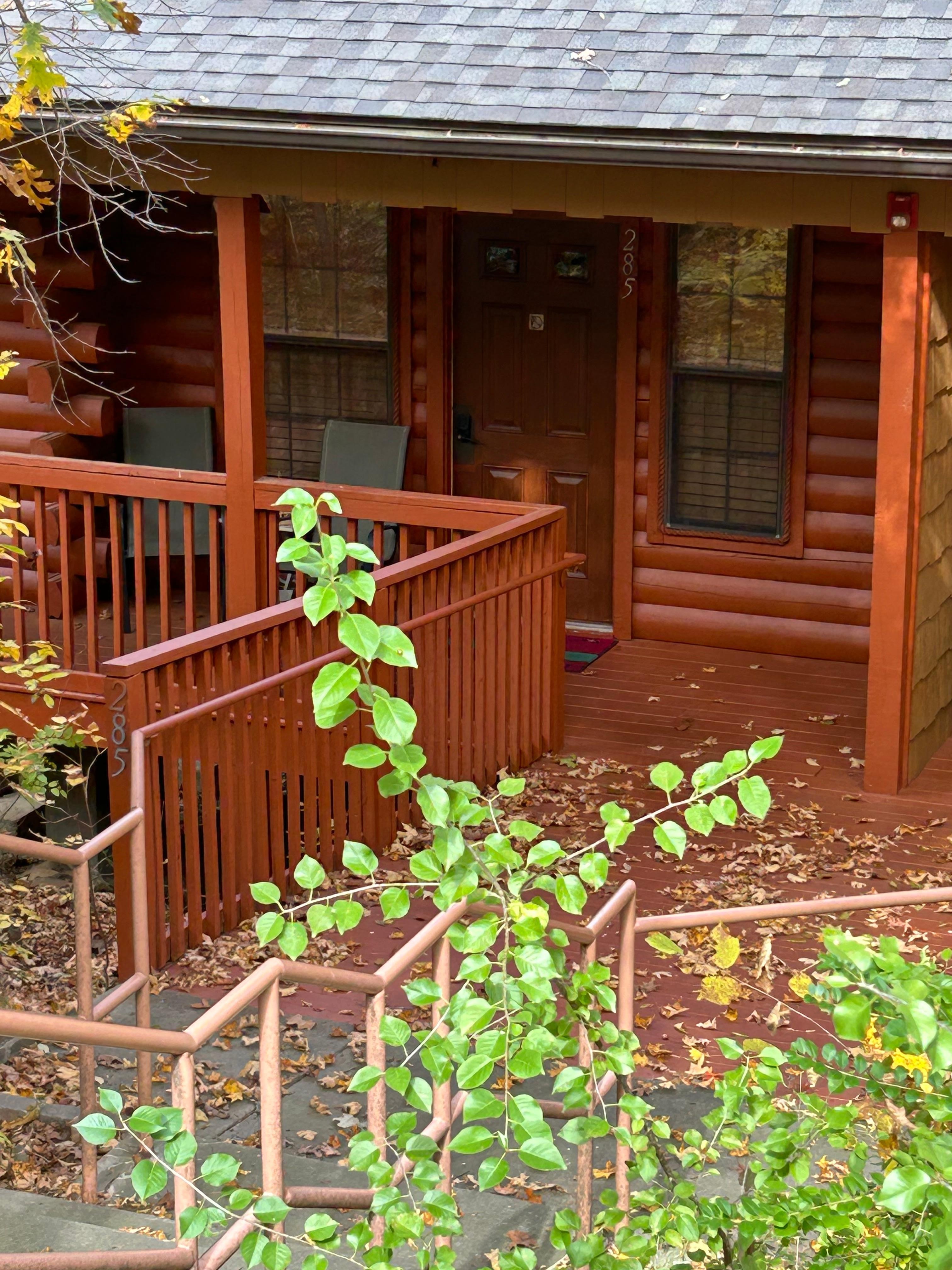 Step outside to your private covered deck with a cozy rocking chair and tranquil wooded views. Whether you're sipping morning coffee or winding down at dusk, this space is made for quiet moments.