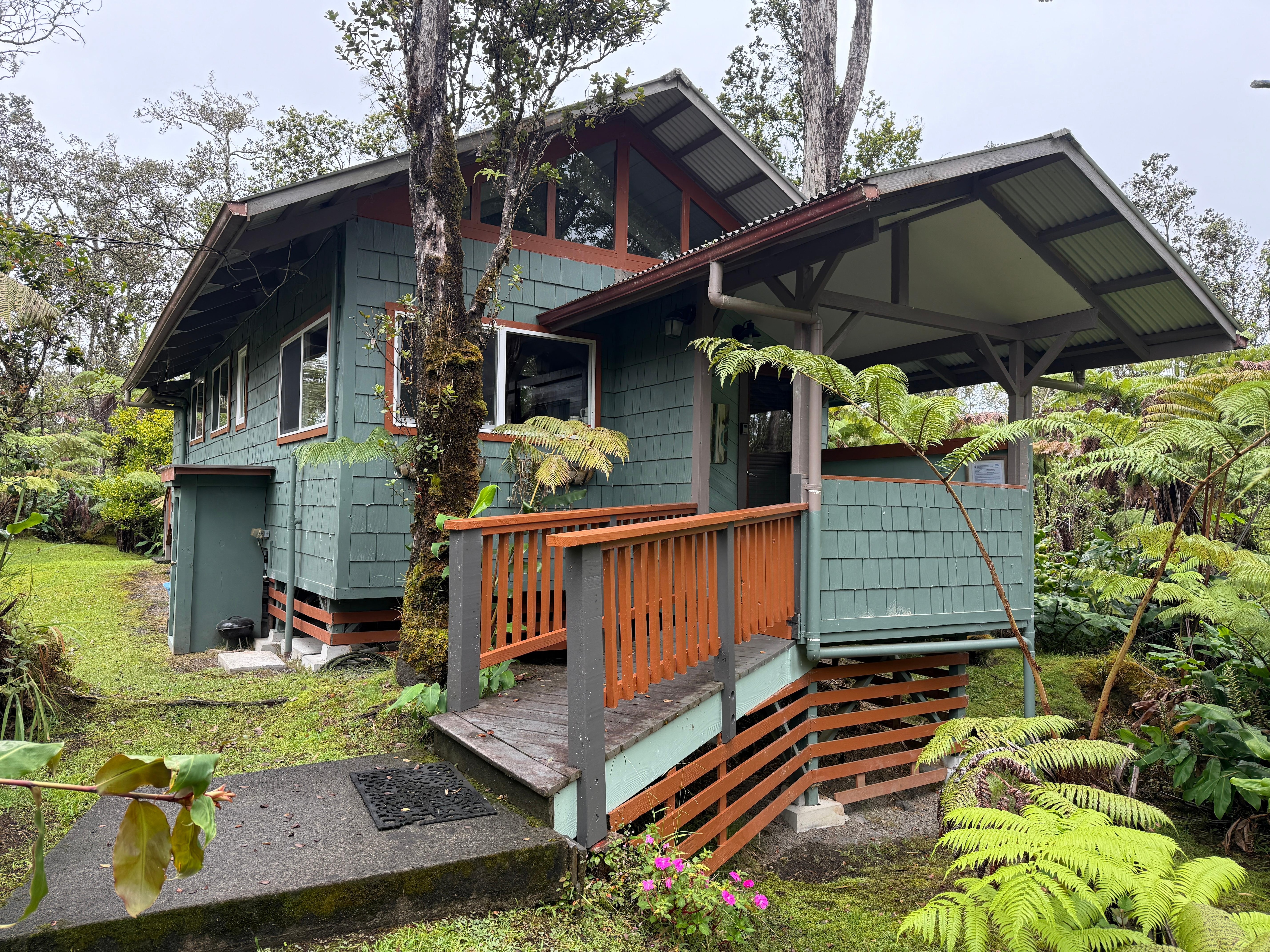 This cottage is located on a very private forested 3 acres of Hawaiian rainforest. A romantic haven! A centralized location to explore the whole east side and to explore the now open Hawaii Volcano National Park.