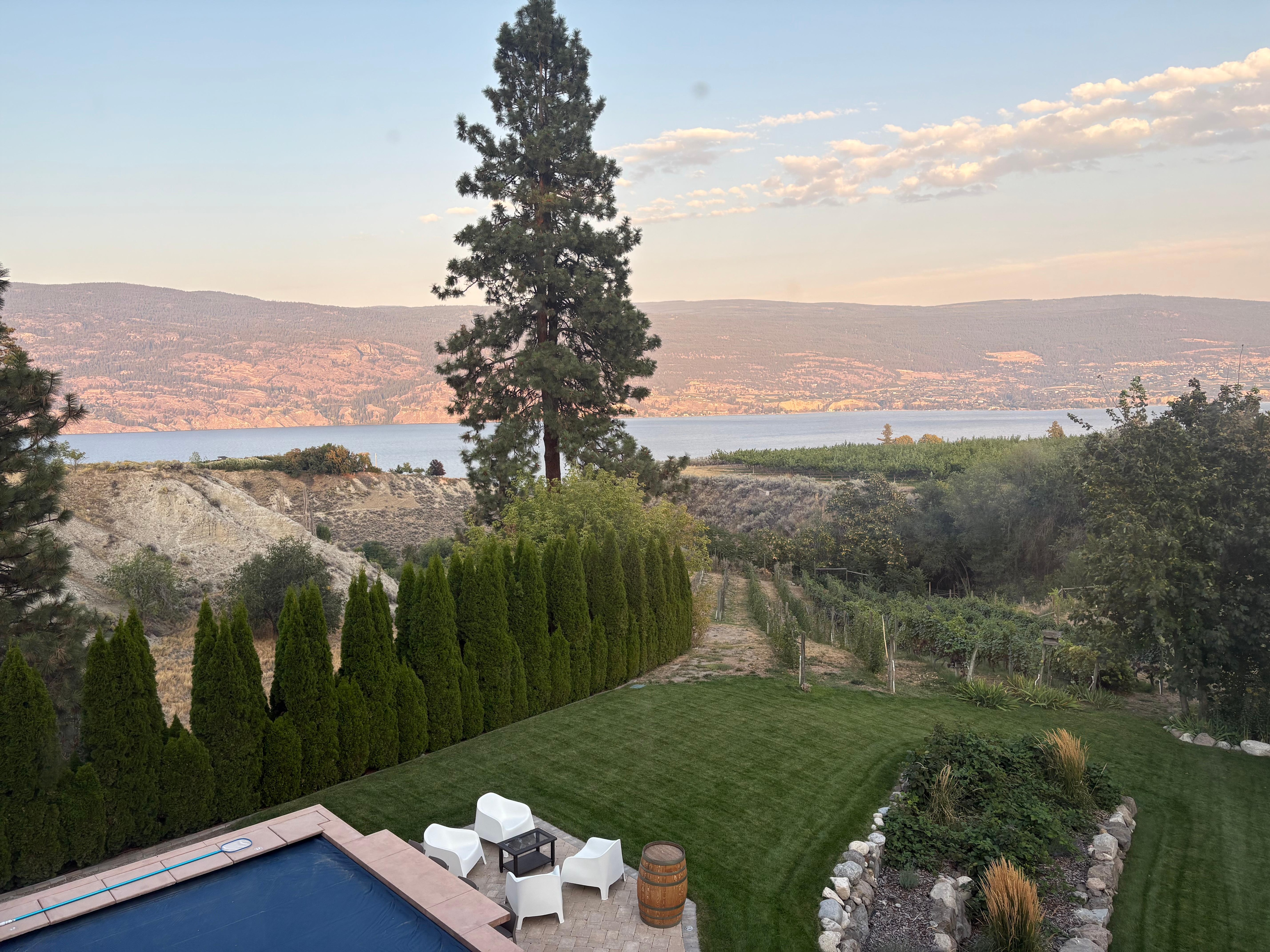This rare gem boasts a stunning lake view, its own vineyard, a private pool and hot tub, nestled in between rolling hills on a quiet country road - the quintessential Okanagan experience.