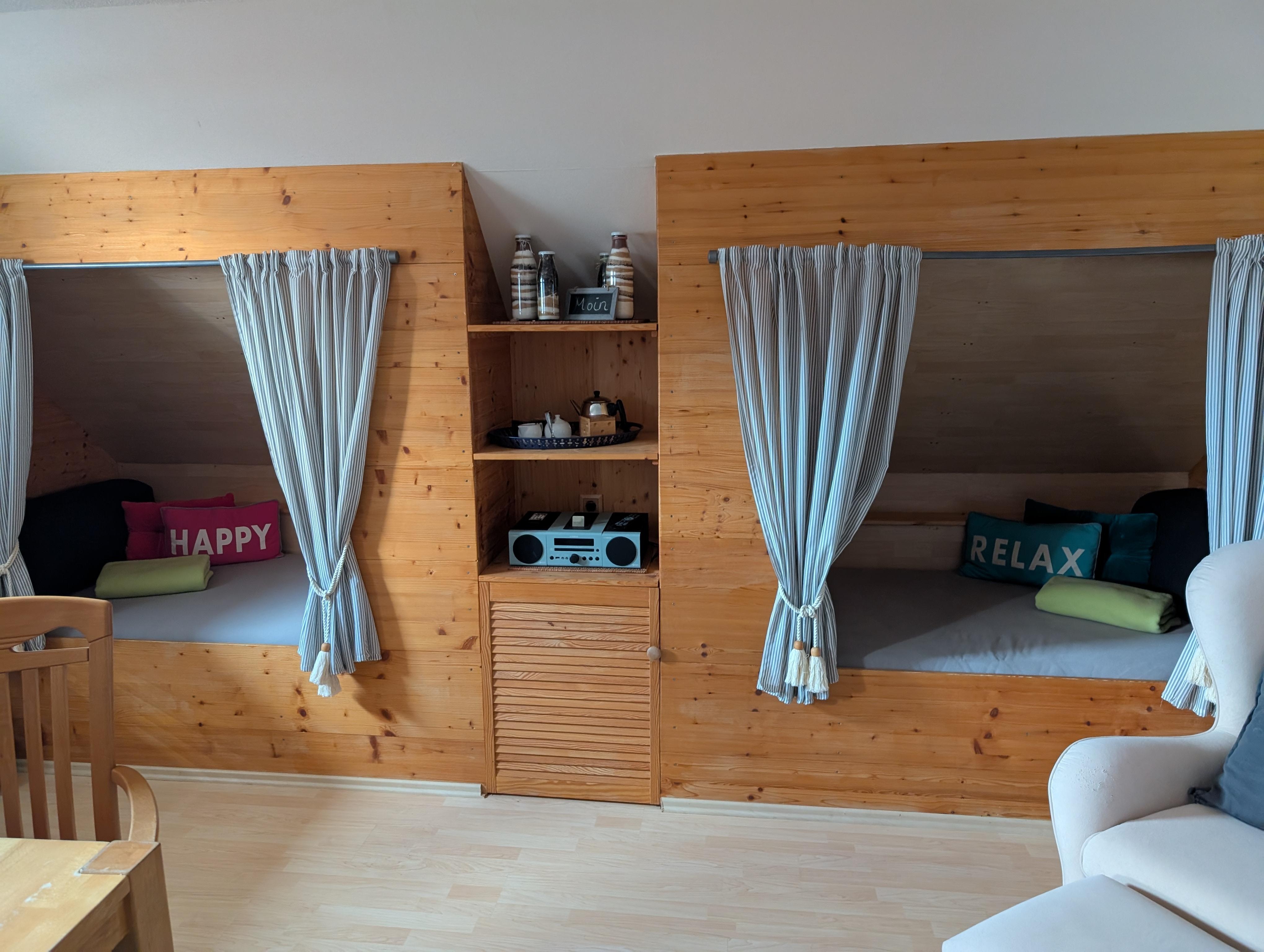 The four of us are no problem, the two slugs in the living room and a separate bedroom with a double bed are waiting for you after long days in the wonderful sea air. We would be happy to provide you with a cot on request.